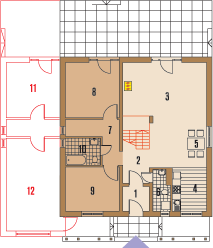 Graficzne opracowanie rzutów poglądowych widocznych na karcie projektu zostało wykonane przez Extradom.pl. Prezentowane przez Extradom.pl wizualizacje wykonane zostały przez autora projektu i należy poczytywać je jedynie za przykład i propozycję wykończenia, wizję architektoniczną autora projektu. Ostateczne wykończenie budynku może nastąpić na wiele sposobów. Szczegółowe rozwiązania zastosowane w oferowanej dokumentacji - w tym również ilość, lokalizacje i wygląd okien, drzwi, kominów - mogą w niewielkim stopniu różnić się od prezentowanej wizualizacji budynku.