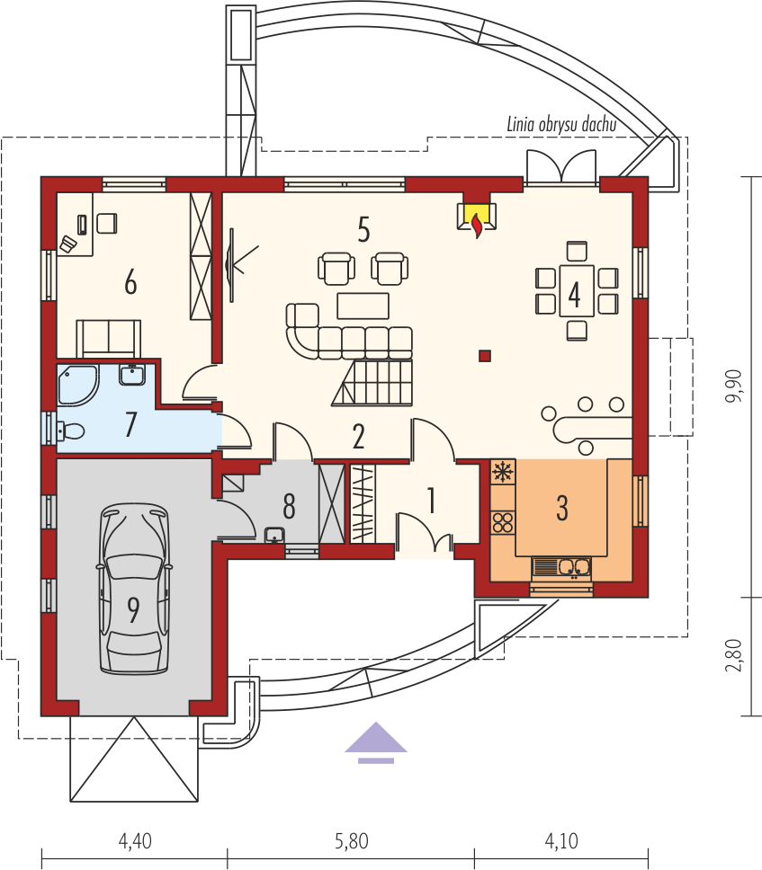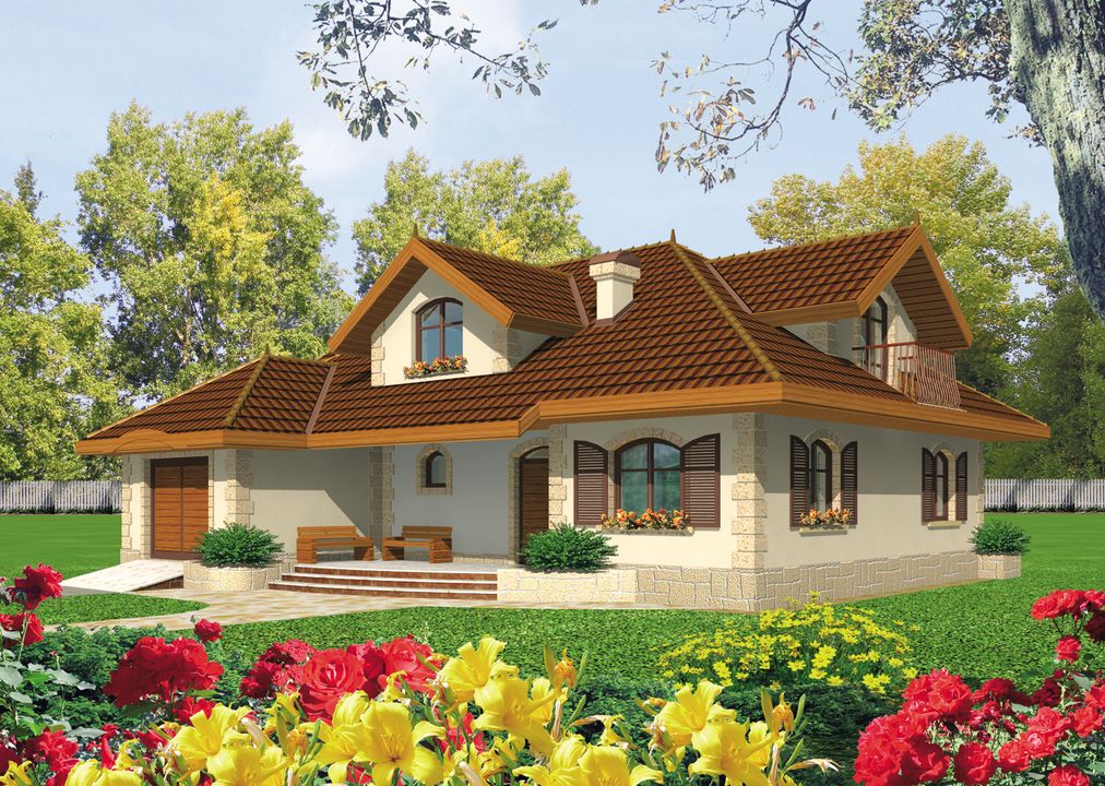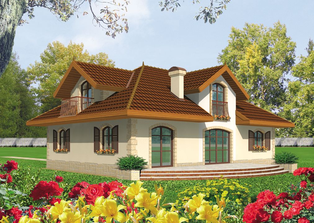 Graficzne opracowanie rzutów poglądowych widocznych na karcie projektu zostało wykonane przez Extradom.pl. Prezentowane przez Extradom.pl wizualizacje wykonane zostały przez autora projektu i należy poczytywać je jedynie za przykład i propozycję wykończenia, wizję architektoniczną autora projektu. Ostateczne wykończenie budynku może nastąpić na wiele sposobów. Szczegółowe rozwiązania zastosowane w oferowanej dokumentacji - w tym również ilość, lokalizacje i wygląd okien, drzwi, kominów - mogą w niewielkim stopniu różnić się od prezentowanej wizualizacji budynku.