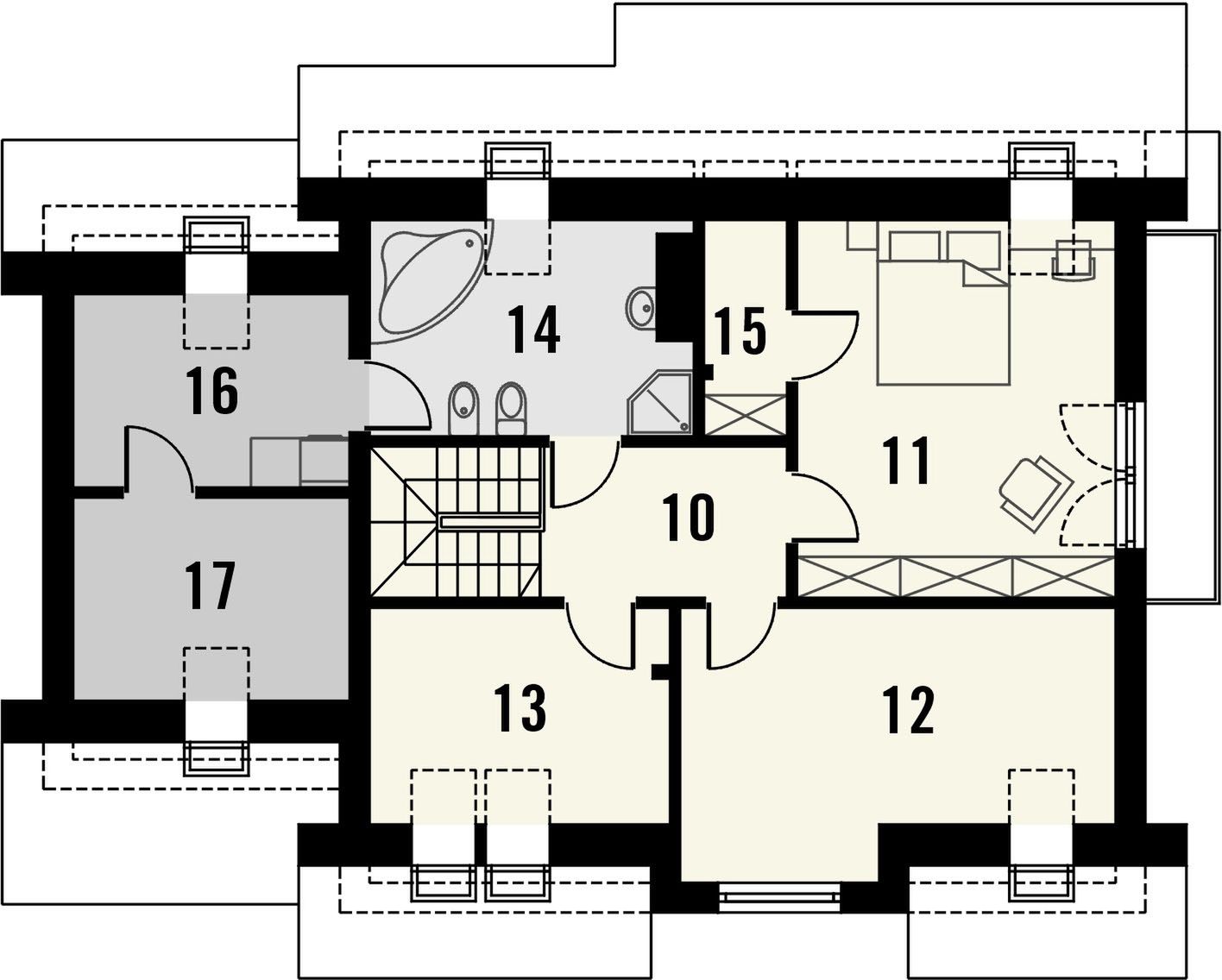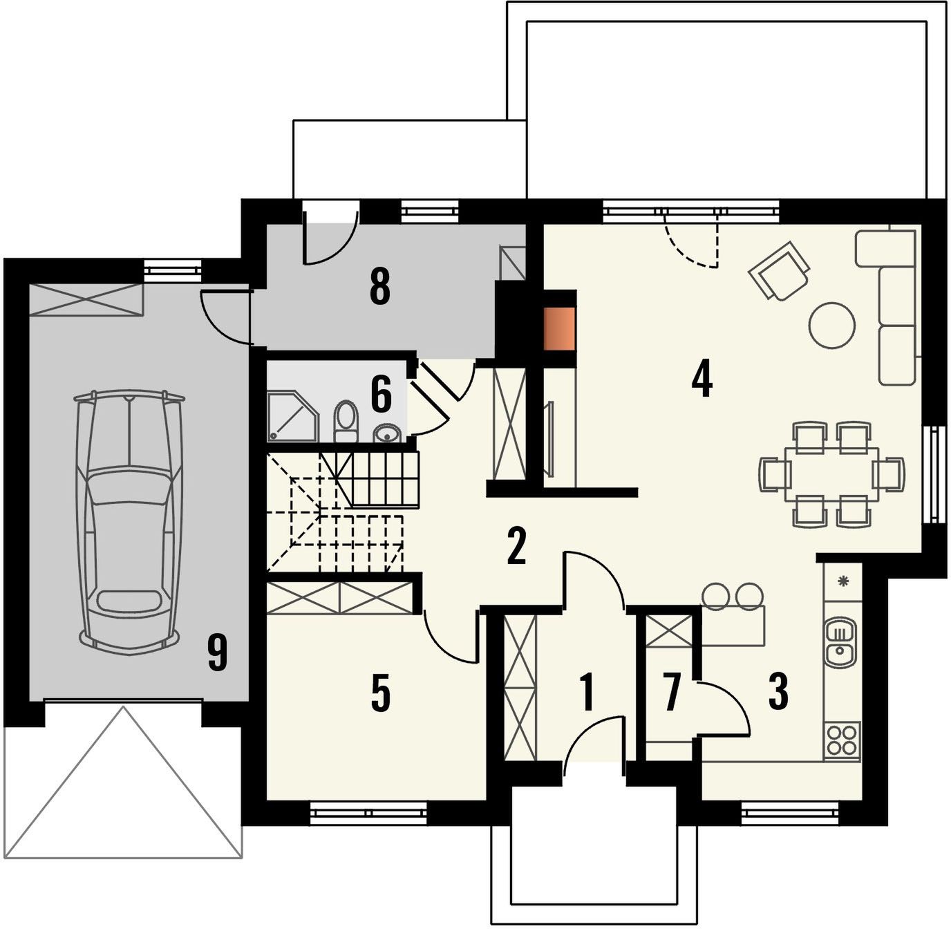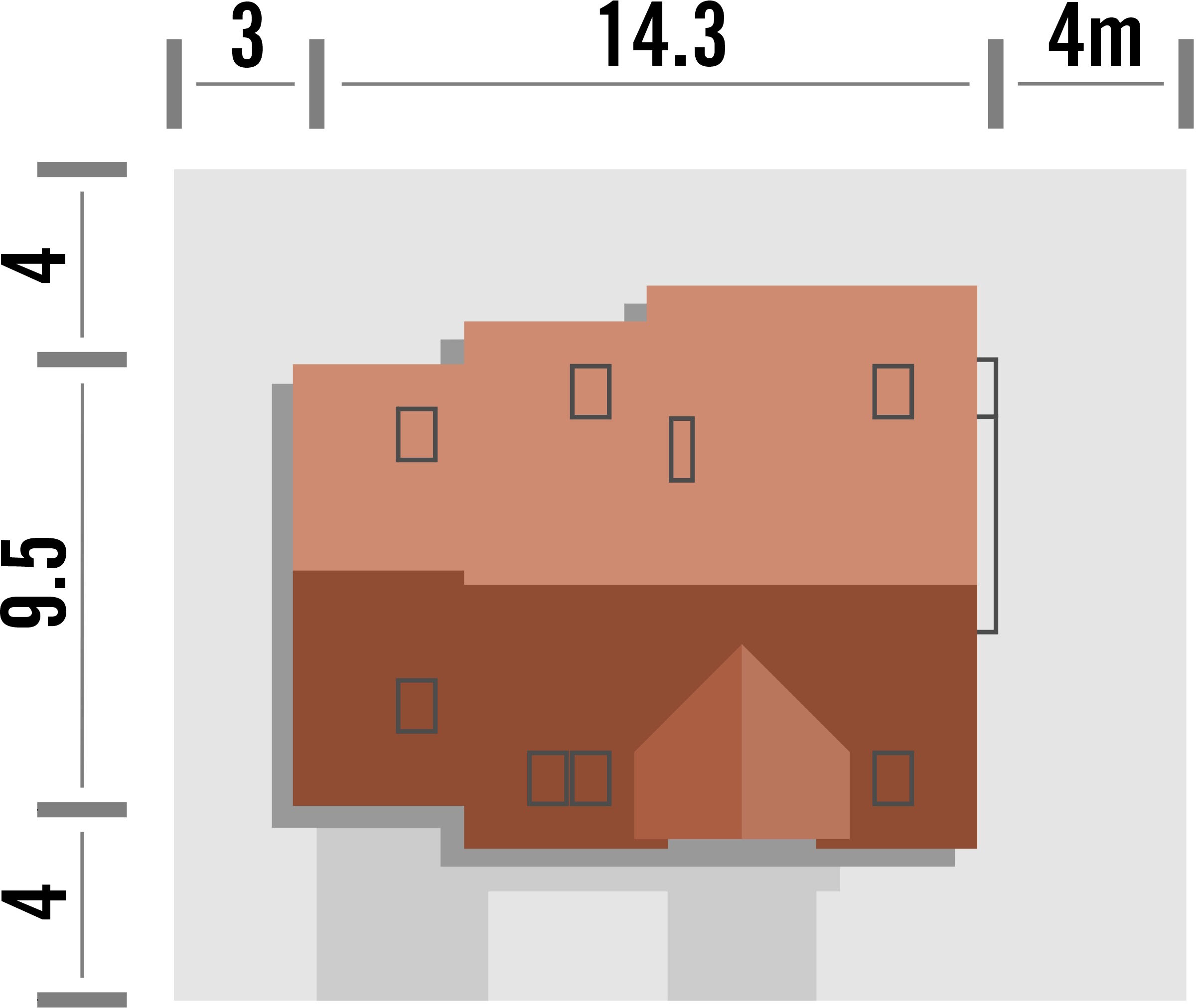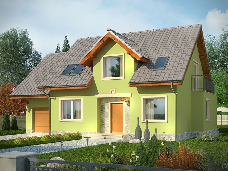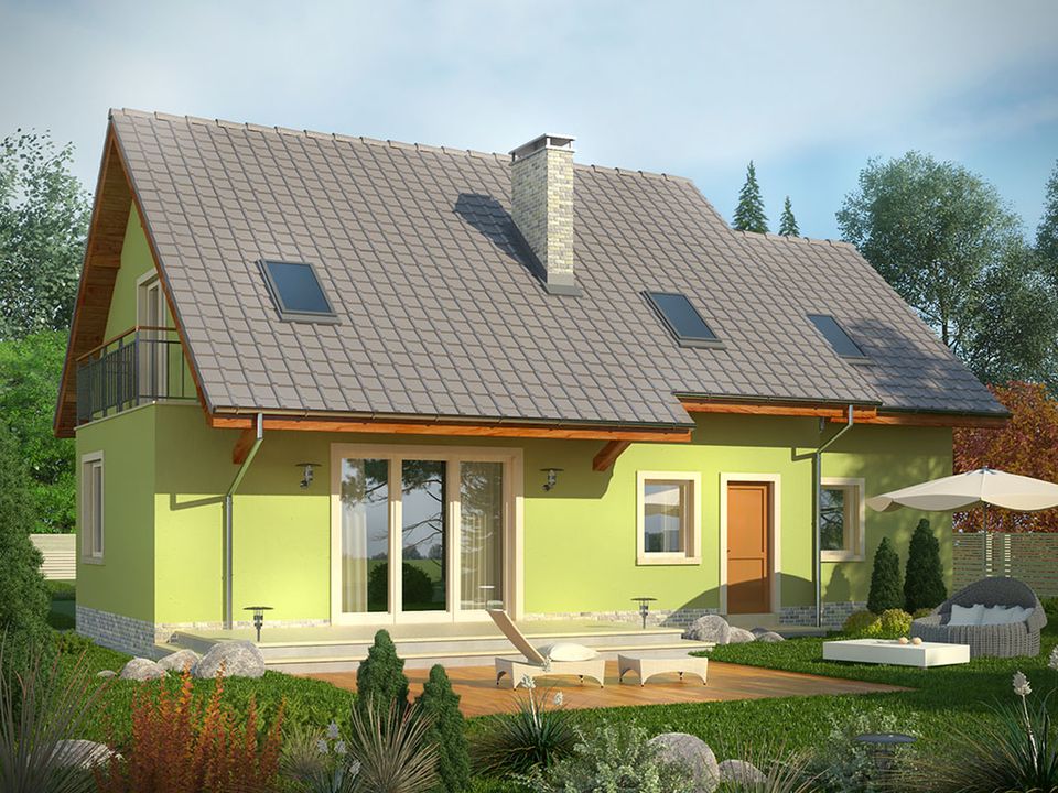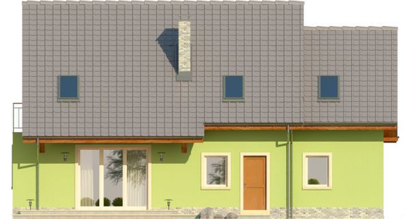 Graficzne opracowanie rzutów poglądowych widocznych na karcie projektu zostało wykonane przez Extradom.pl. Prezentowane przez Extradom.pl wizualizacje wykonane zostały przez autora projektu i należy poczytywać je jedynie za przykład i propozycję wykończenia, wizję architektoniczną autora projektu. Ostateczne wykończenie budynku może nastąpić na wiele sposobów. Szczegółowe rozwiązania zastosowane w oferowanej dokumentacji - w tym również ilość, lokalizacje i wygląd okien, drzwi, kominów - mogą w niewielkim stopniu różnić się od prezentowanej wizualizacji budynku.