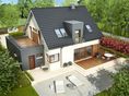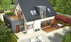 Graficzne opracowanie rzutów poglądowych widocznych na karcie projektu zostało wykonane przez Extradom.pl. Prezentowane przez Extradom.pl wizualizacje wykonane zostały przez autora projektu i należy poczytywać je jedynie za przykład i propozycję wykończenia, wizję architektoniczną autora projektu. Ostateczne wykończenie budynku może nastąpić na wiele sposobów. Szczegółowe rozwiązania zastosowane w oferowanej dokumentacji - w tym również ilość, lokalizacje i wygląd okien, drzwi, kominów - mogą w niewielkim stopniu różnić się od prezentowanej wizualizacji budynku.