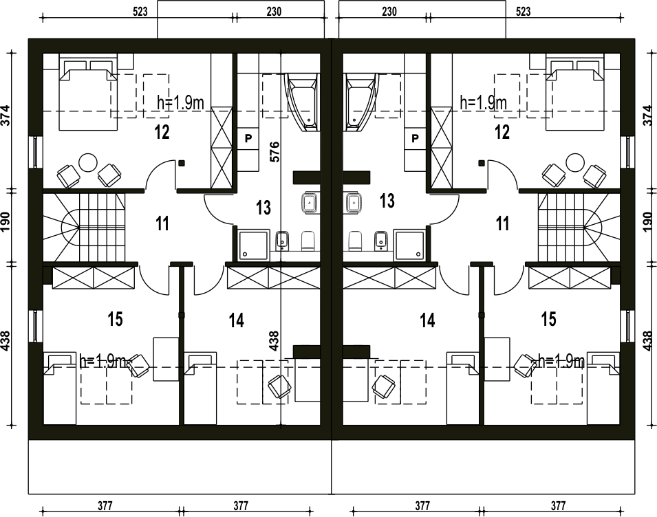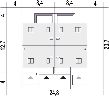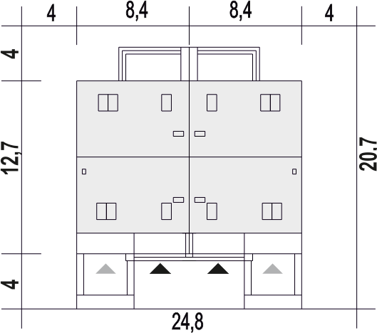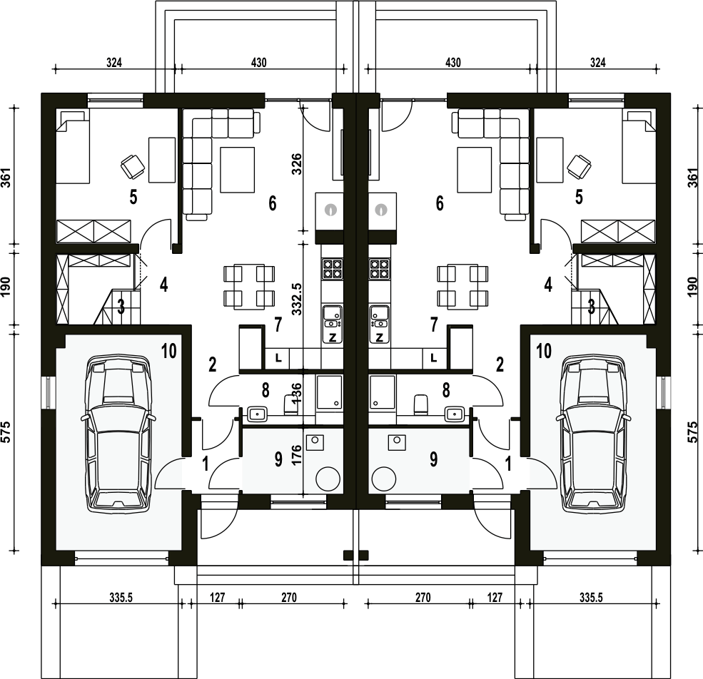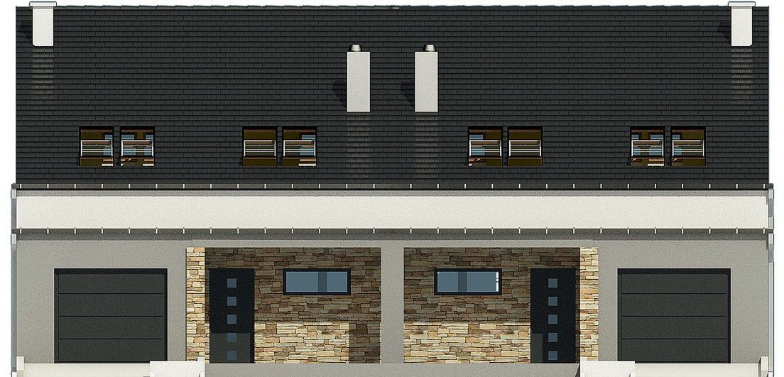 Projekt jest w fazie koncepcji. Przy zakupie projektu należy zapłacić 50% zaliczki. Zaliczka jest bezzwrotna w przypadku zwrotu lub rezygnacji z zamówienia. Budynek dwulokalowy posadowiony na wspólnym fundamencie. Jeśli planujesz budowę na osobnych działkach zamów pojedyncze segmenty: podstawa + lustro.