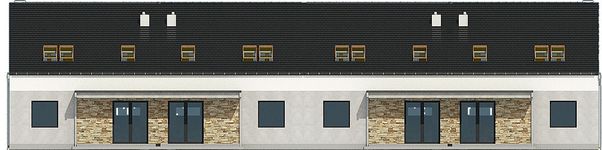 Graficzne opracowanie rzutów poglądowych widocznych na karcie projektu zostało wykonane przez Extradom.pl. Prezentowane przez Extradom.pl wizualizacje wykonane zostały przez autora projektu i należy poczytywać je jedynie za przykład i propozycję wykończenia, wizję architektoniczną autora projektu. Ostateczne wykończenie budynku może nastąpić na wiele sposobów. Szczegółowe rozwiązania zastosowane w oferowanej dokumentacji - w tym również ilość, lokalizacje i wygląd okien, drzwi, kominów - mogą w niewielkim stopniu różnić się od prezentowanej wizualizacji budynku.