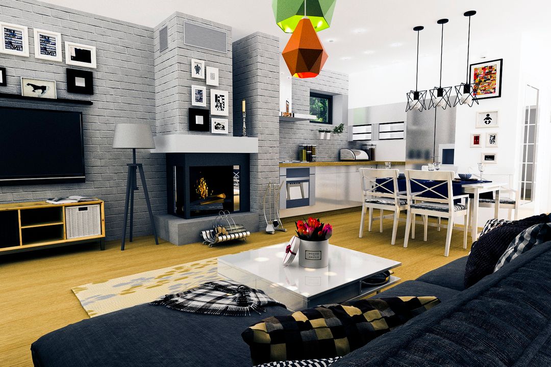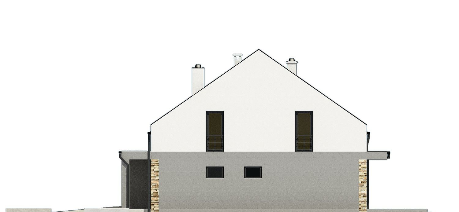 Graficzne opracowanie rzutów poglądowych widocznych na karcie projektu zostało wykonane przez Extradom.pl. Prezentowane przez Extradom.pl wizualizacje wykonane zostały przez autora projektu i należy poczytywać je jedynie za przykład i propozycję wykończenia, wizję architektoniczną autora projektu. Ostateczne wykończenie budynku może nastąpić na wiele sposobów. Szczegółowe rozwiązania zastosowane w oferowanej dokumentacji - w tym również ilość, lokalizacje i wygląd okien, drzwi, kominów - mogą w niewielkim stopniu różnić się od prezentowanej wizualizacji budynku.