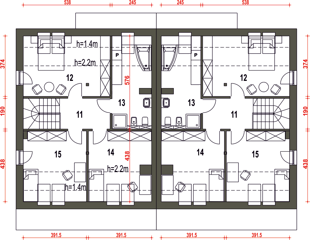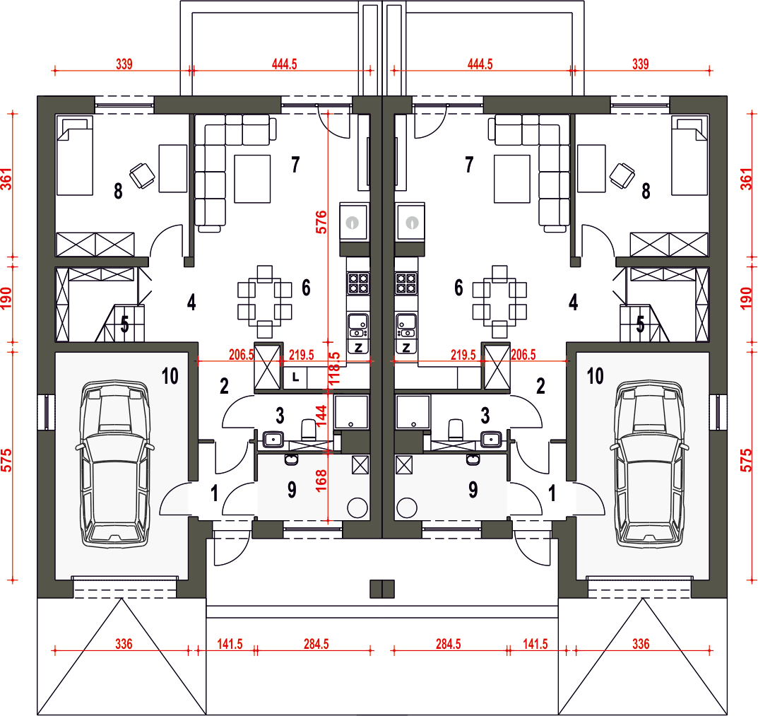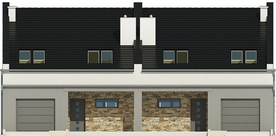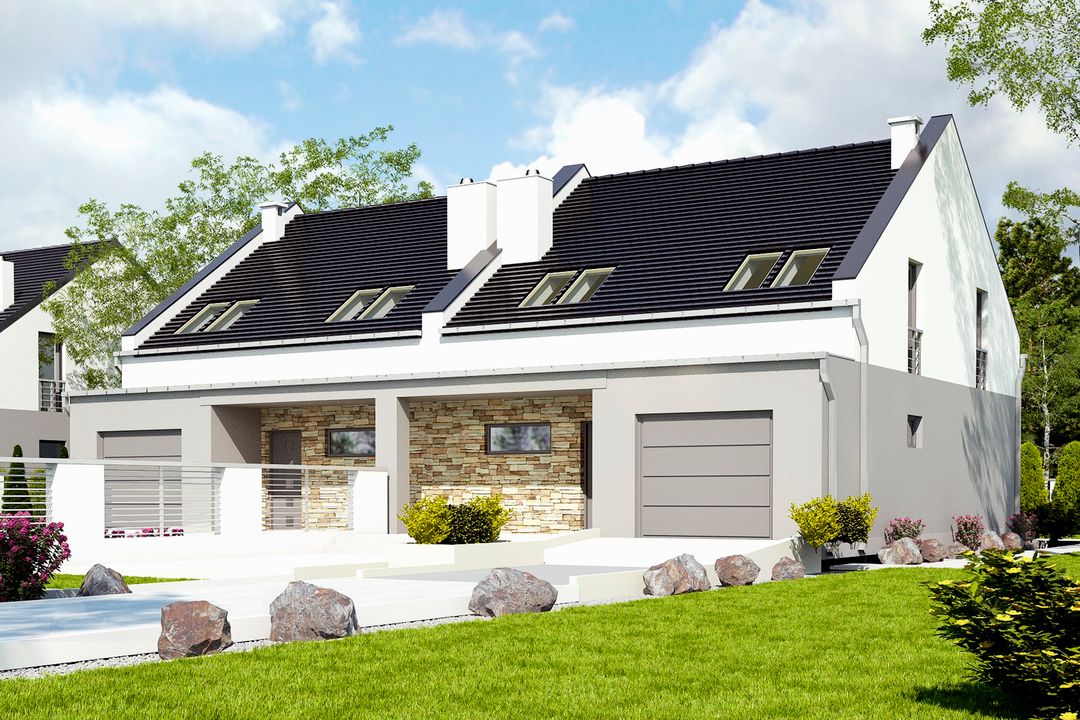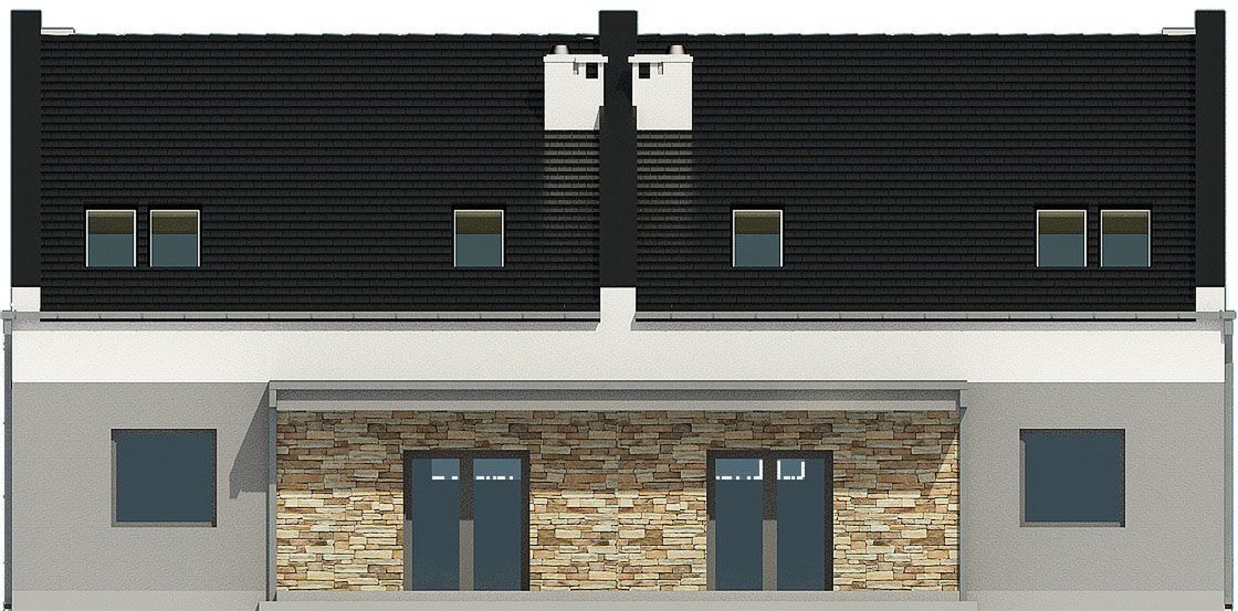 Projekt jest w fazie koncepcji. Przy zakupie projektu należy zapłacić 50% zaliczki. Zaliczka jest bezzwrotna w przypadku zwrotu lub rezygnacji z zamówienia. Budynek dwulokalowy posadowiony na wspólnym fundamencie. Jeśli planujesz budowę na osobnych działkach zamów pojedyncze segmenty: podstawa + lustro.