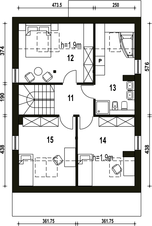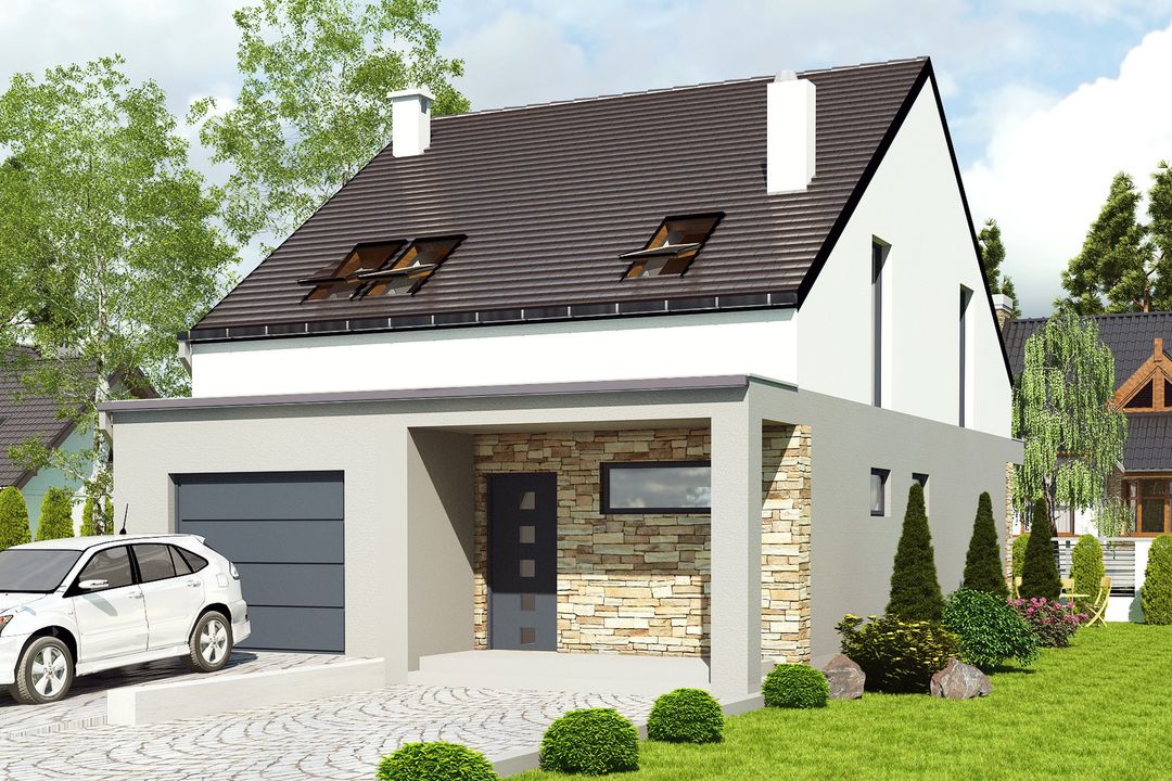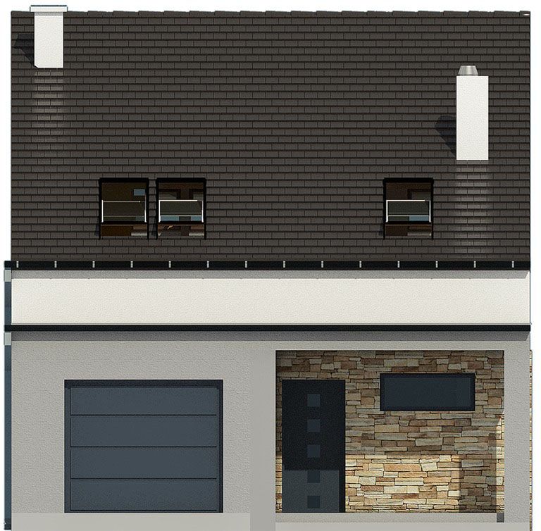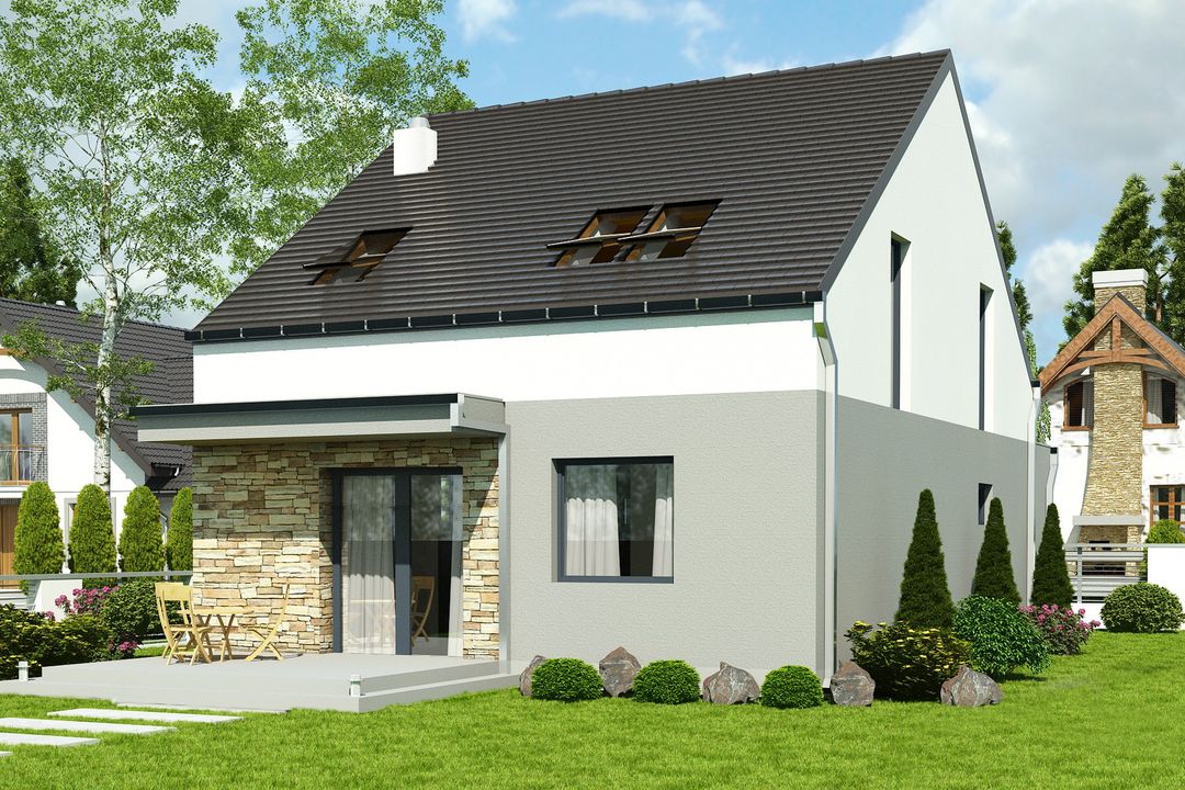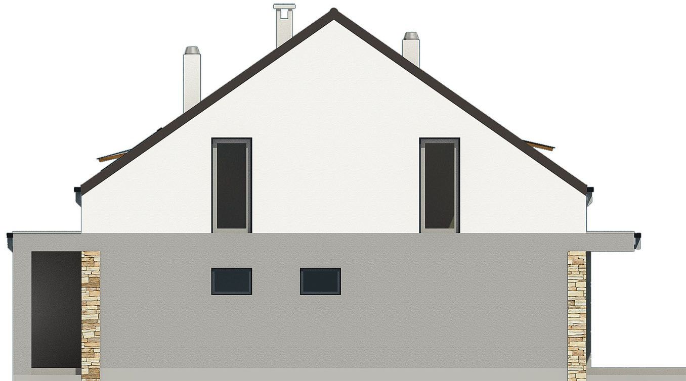 Graficzne opracowanie rzutów poglądowych widocznych na karcie projektu zostało wykonane przez Extradom.pl. Prezentowane przez Extradom.pl wizualizacje wykonane zostały przez autora projektu i należy poczytywać je jedynie za przykład i propozycję wykończenia, wizję architektoniczną autora projektu. Ostateczne wykończenie budynku może nastąpić na wiele sposobów. Szczegółowe rozwiązania zastosowane w oferowanej dokumentacji - w tym również ilość, lokalizacje i wygląd okien, drzwi, kominów - mogą w niewielkim stopniu różnić się od prezentowanej wizualizacji budynku.