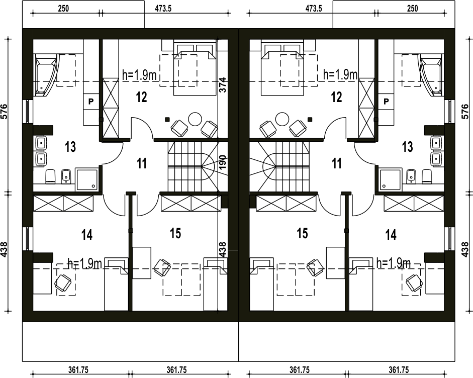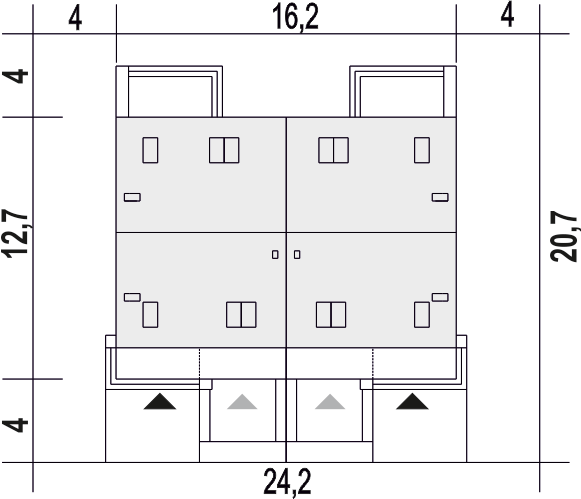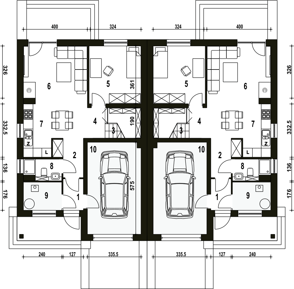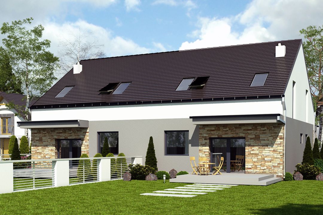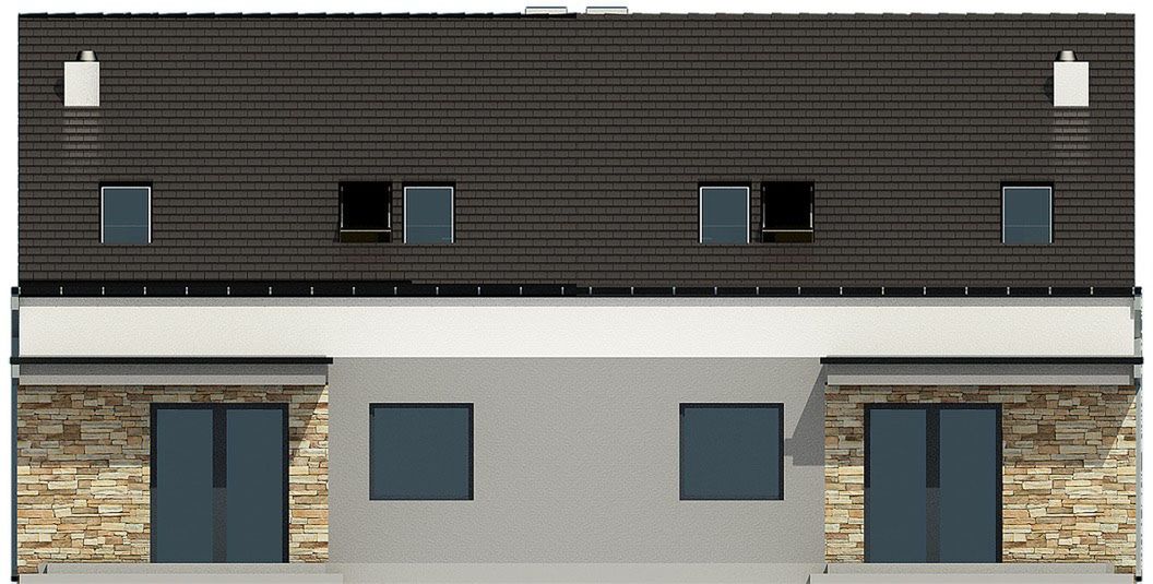 Budynek dwulokalowy posadowiony na wspólnym fundamencie. Jeśli planujesz budowę na osobnych działkach zamów pojedyncze segmenty: podstawa + lustro.