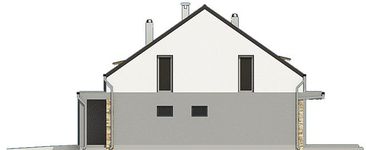 Graficzne opracowanie rzutów poglądowych widocznych na karcie projektu zostało wykonane przez Extradom.pl. Prezentowane przez Extradom.pl wizualizacje wykonane zostały przez autora projektu i należy poczytywać je jedynie za przykład i propozycję wykończenia, wizję architektoniczną autora projektu. Ostateczne wykończenie budynku może nastąpić na wiele sposobów. Szczegółowe rozwiązania zastosowane w oferowanej dokumentacji - w tym również ilość, lokalizacje i wygląd okien, drzwi, kominów - mogą w niewielkim stopniu różnić się od prezentowanej wizualizacji budynku.