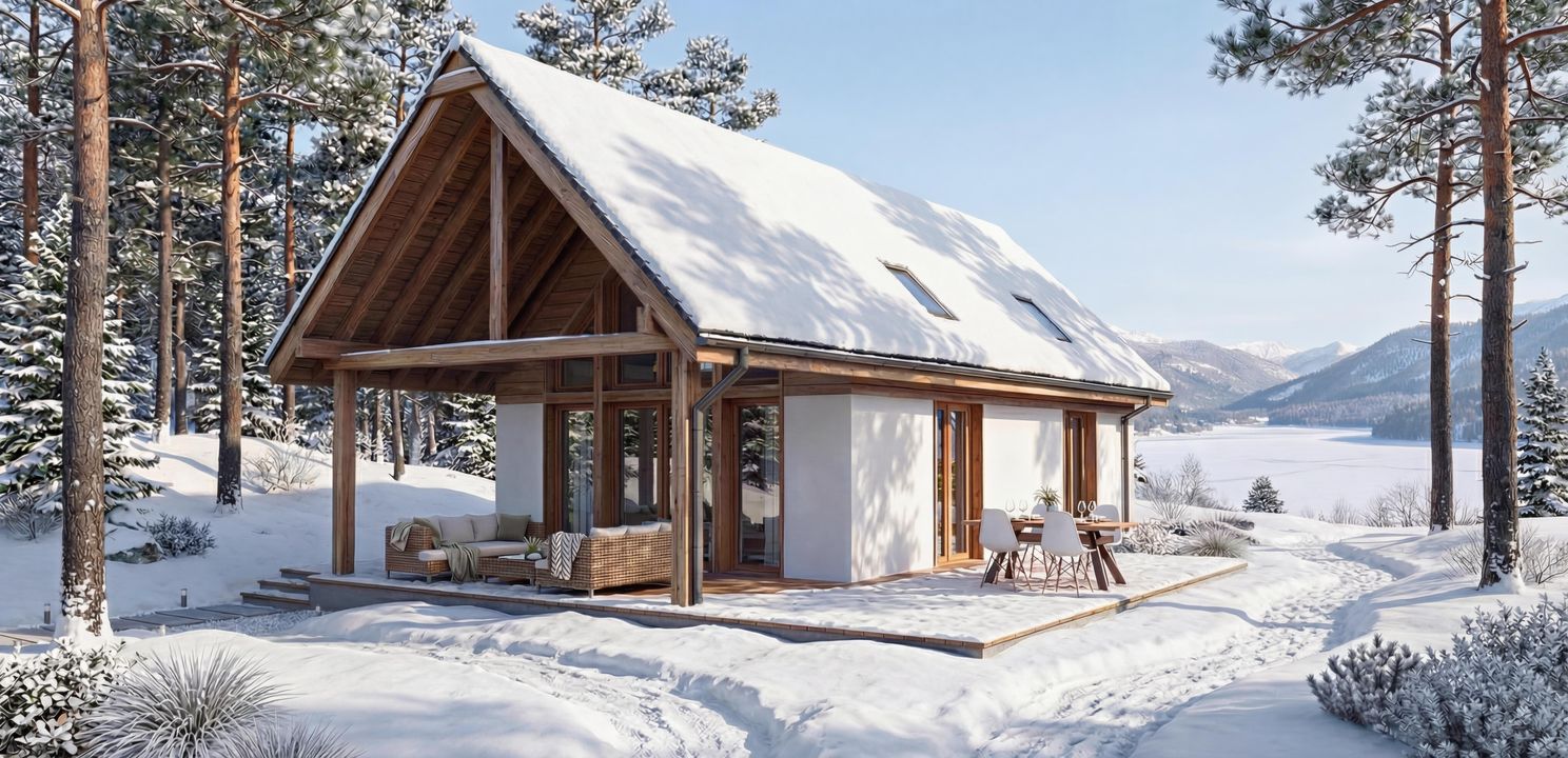 Posadowienie budynku: ława fundamentowa; Ściany zewnętrzne: pustak 24cm + ocieplenie 20cm; Ściany wewnętrzne: pustak 12cm; Strop nad parterem: żelbetowy; Konstrukcja dachu: Drewniana; Pokrycie dachu: blacha; Elewacja: deska;