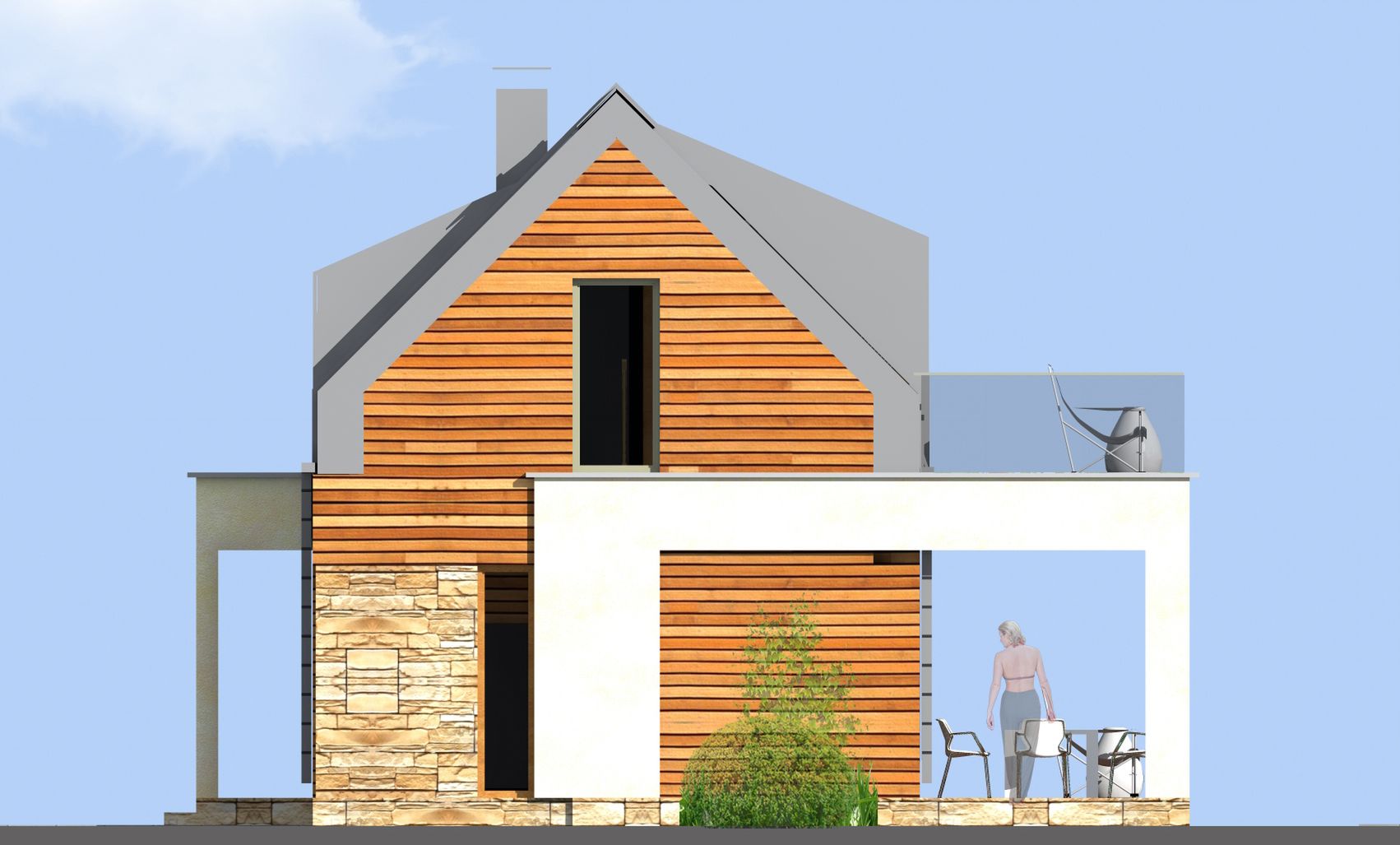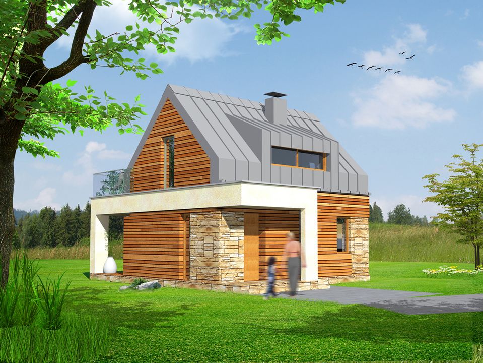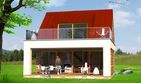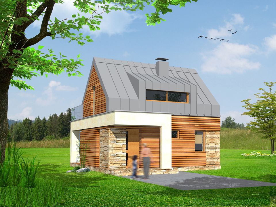 Graficzne opracowanie rzutów poglądowych widocznych na karcie projektu zostało wykonane przez Extradom.pl. Prezentowane przez Extradom.pl wizualizacje wykonane zostały przez autora projektu i należy poczytywać je jedynie za przykład i propozycję wykończenia, wizję architektoniczną autora projektu. Ostateczne wykończenie budynku może nastąpić na wiele sposobów. Szczegółowe rozwiązania zastosowane w oferowanej dokumentacji - w tym również ilość, lokalizacje i wygląd okien, drzwi, kominów - mogą w niewielkim stopniu różnić się od prezentowanej wizualizacji budynku.