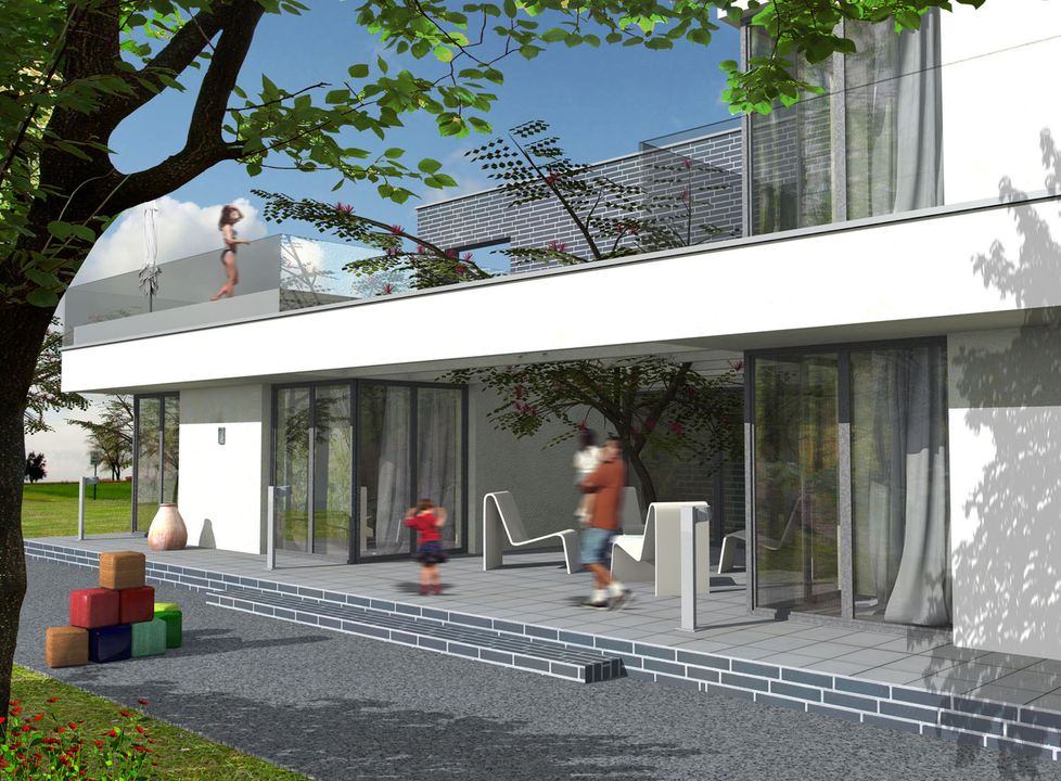 Fundamenty- żelbetowe. Ściany – dwuwarstwowe: bloczki porotherm gr.25 cm + docieplenie gr. 15-18 cm wraz z tynkiem mineralnym; strop – żelbetowy; pokrycie dachu – dach odwrócony lub tradycyjny. Ściany działowe – szkieletowe lub ceramiczne. Drzwi tarasowe oraz balkonowe o podwyższonej izolacyjności termicznej (aluminiowe).