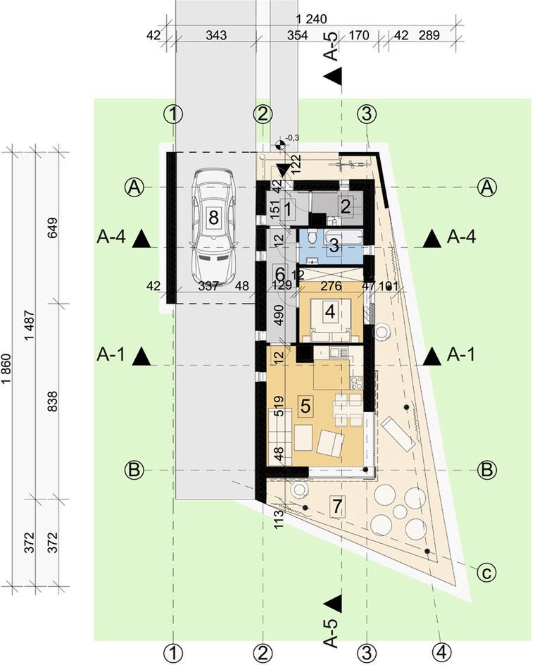Fundamenty- żelbetowe. Ściany – dwuwarstwowe: bloczki porotherm gr.25 cm + docieplenie gr. 15-18 cm wraz z tynkiem mineralnym; strop – żelbetowy; pokrycie dachu – dach odwrócony lub tradycyjny. Ściany działowe – szkieletowe lub ceramiczne. Drzwi tarasowe oraz balkonowe o podwyższonej izolacyjności termicznej (aluminiowe lub pvc).