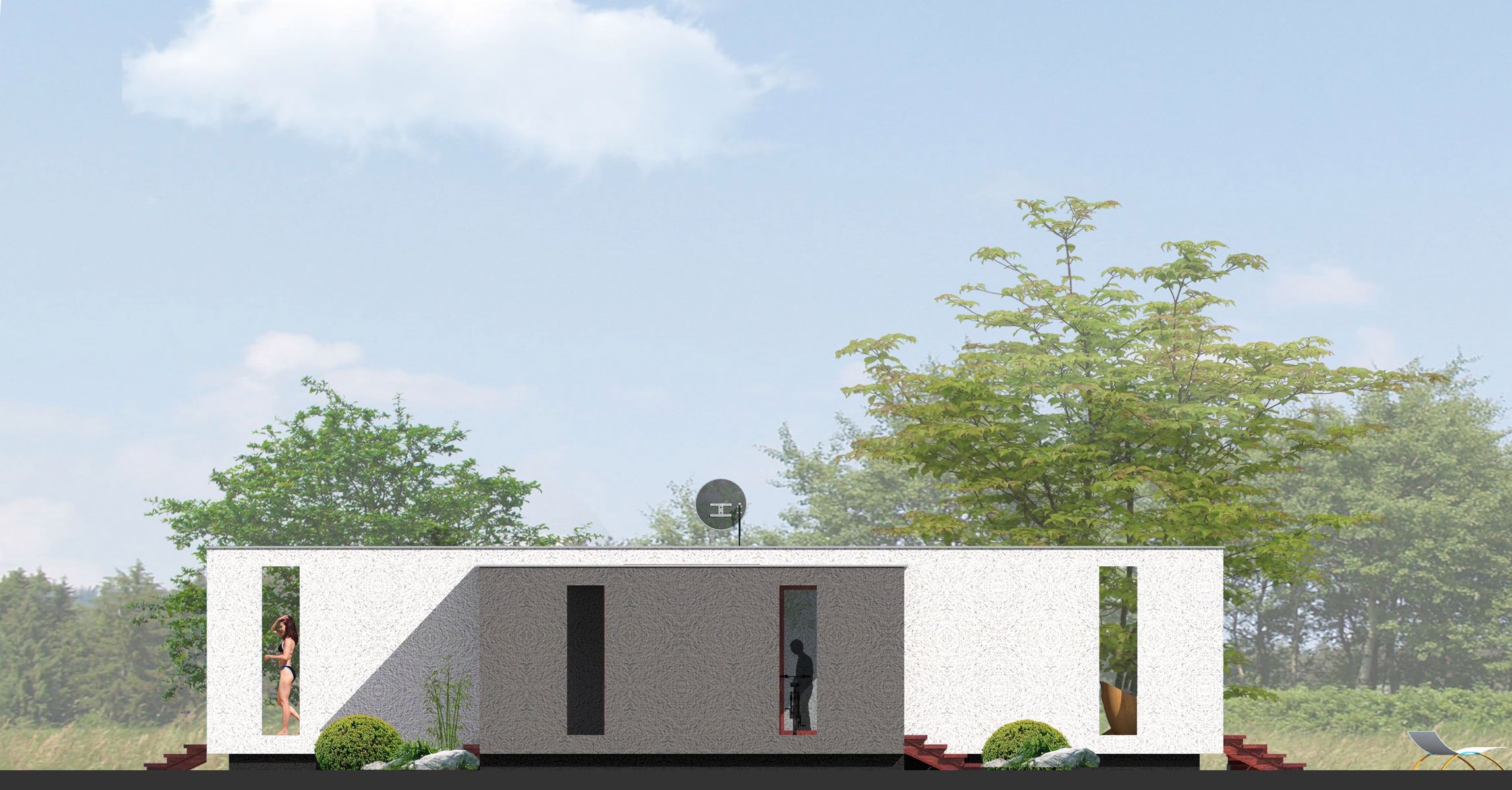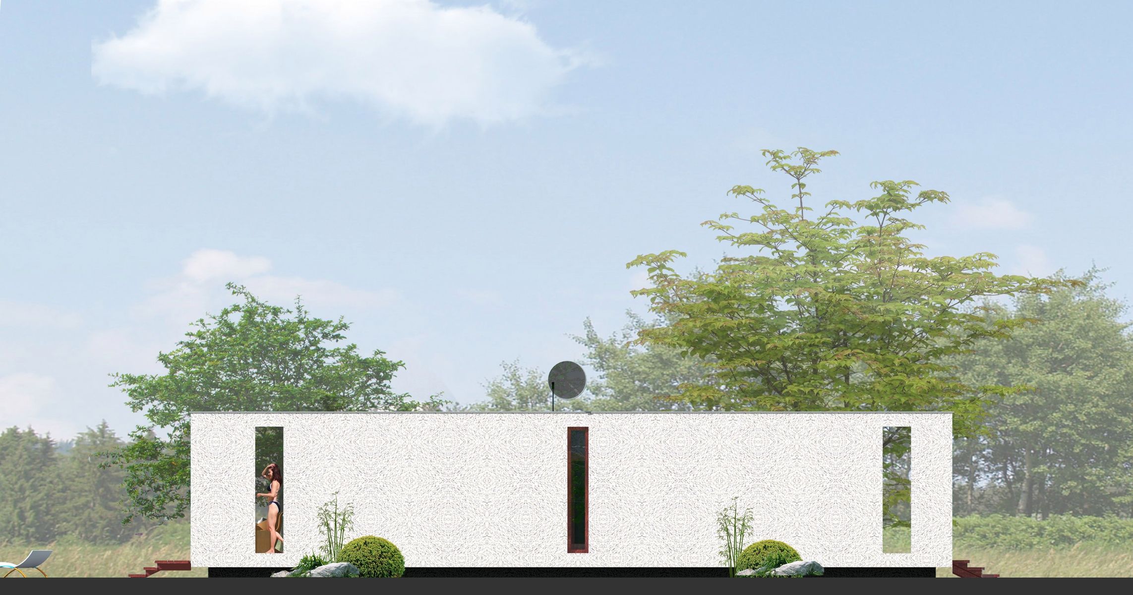 Graficzne opracowanie rzutów poglądowych widocznych na karcie projektu zostało wykonane przez Extradom.pl. Prezentowane przez Extradom.pl wizualizacje wykonane zostały przez autora projektu i należy poczytywać je jedynie za przykład i propozycję wykończenia, wizję architektoniczną autora projektu. Ostateczne wykończenie budynku może nastąpić na wiele sposobów. Szczegółowe rozwiązania zastosowane w oferowanej dokumentacji - w tym również ilość, lokalizacje i wygląd okien, drzwi, kominów - mogą w niewielkim stopniu różnić się od prezentowanej wizualizacji budynku.