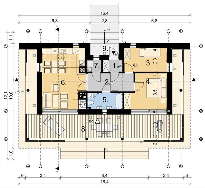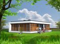 Graficzne opracowanie rzutów poglądowych widocznych na karcie projektu zostało wykonane przez Extradom.pl. Prezentowane przez Extradom.pl wizualizacje wykonane zostały przez autora projektu i należy poczytywać je jedynie za przykład i propozycję wykończenia, wizję architektoniczną autora projektu. Ostateczne wykończenie budynku może nastąpić na wiele sposobów. Szczegółowe rozwiązania zastosowane w oferowanej dokumentacji - w tym również ilość, lokalizacje i wygląd okien, drzwi, kominów - mogą w niewielkim stopniu różnić się od prezentowanej wizualizacji budynku.