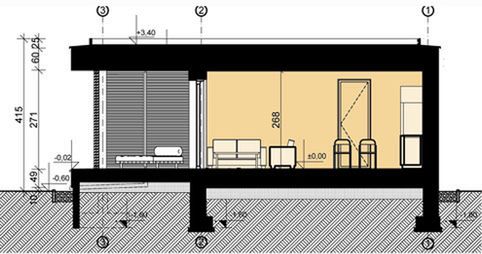 Fundamenty: żelbetowe. Ściany: dwuwarstwowe: bloczki porotherm 25 cm + docieplenie 15 cm wraz z tynkiem mineralnym (ściany od strony tarasu pokryte okładziną drewniana lub płytami elewacyjnymi hpl o gr. 4 cm). Strop: żelbetowy. Pokrycie dachu membraną dachowa epdm. Ściany działowe: szkieletowe. Mobilne systemowe panele żaluzyjne- drewniane /hunter duglas. Drzwi tarasowe oraz balkonowe o podwyższonej izolacyjności termicznej.