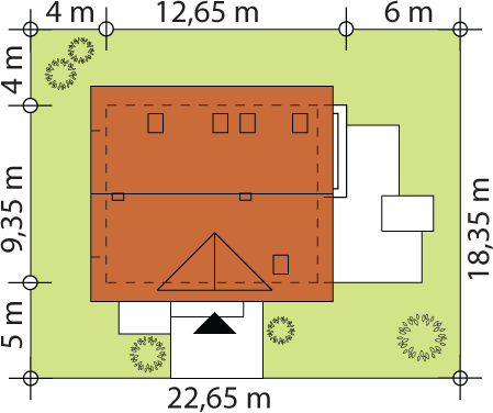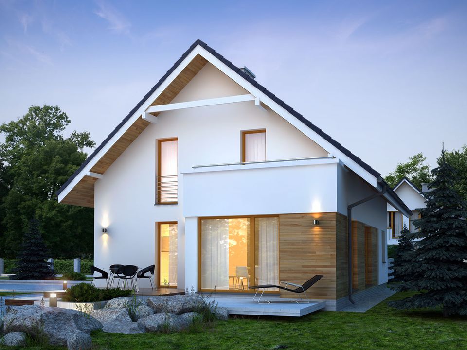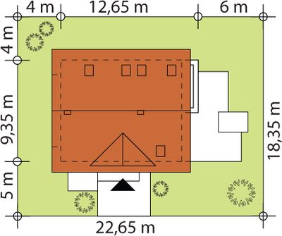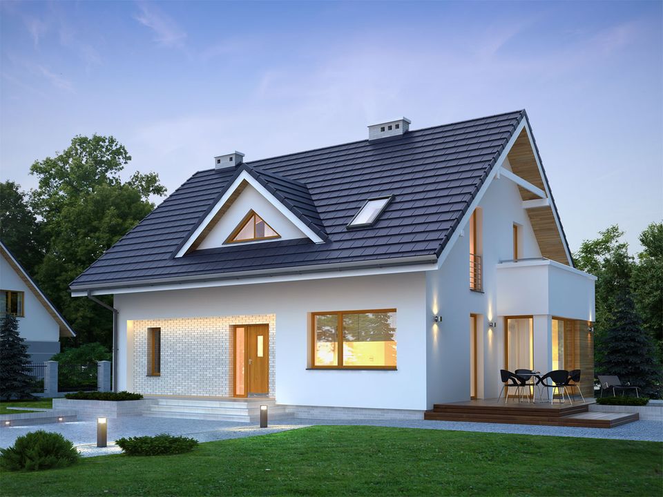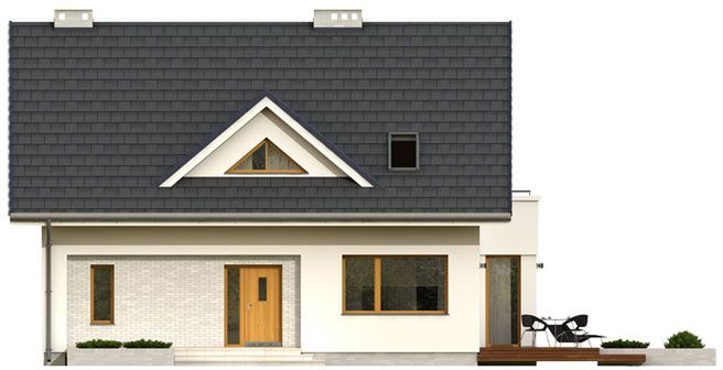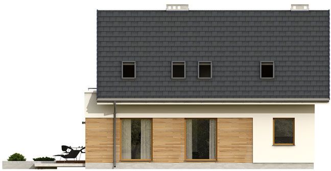 Graficzne opracowanie rzutów poglądowych widocznych na karcie projektu zostało wykonane przez Extradom.pl. Prezentowane przez Extradom.pl wizualizacje wykonane zostały przez autora projektu i należy poczytywać je jedynie za przykład i propozycję wykończenia, wizję architektoniczną autora projektu. Ostateczne wykończenie budynku może nastąpić na wiele sposobów. Szczegółowe rozwiązania zastosowane w oferowanej dokumentacji - w tym również ilość, lokalizacje i wygląd okien, drzwi, kominów - mogą w niewielkim stopniu różnić się od prezentowanej wizualizacji budynku.