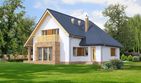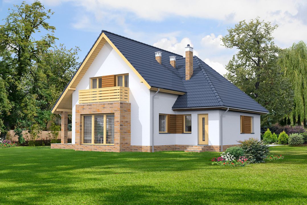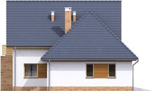 Graficzne opracowanie rzutów poglądowych widocznych na karcie projektu zostało wykonane przez Extradom.pl. Prezentowane przez Extradom.pl wizualizacje wykonane zostały przez autora projektu i należy poczytywać je jedynie za przykład i propozycję wykończenia, wizję architektoniczną autora projektu. Ostateczne wykończenie budynku może nastąpić na wiele sposobów. Szczegółowe rozwiązania zastosowane w oferowanej dokumentacji - w tym również ilość, lokalizacje i wygląd okien, drzwi, kominów - mogą w niewielkim stopniu różnić się od prezentowanej wizualizacji budynku.