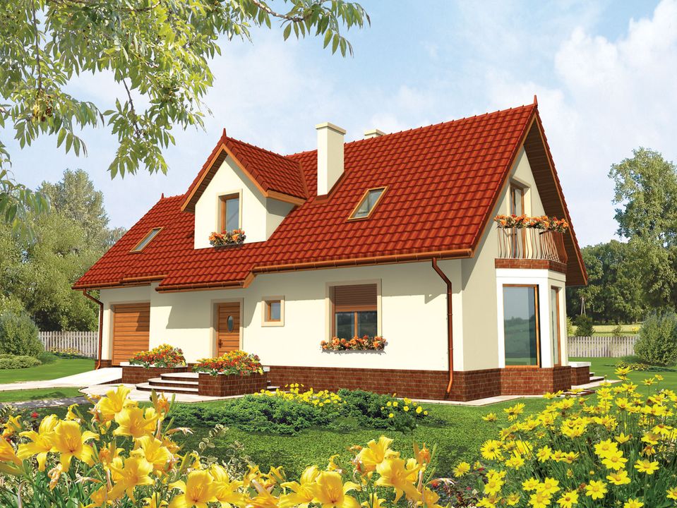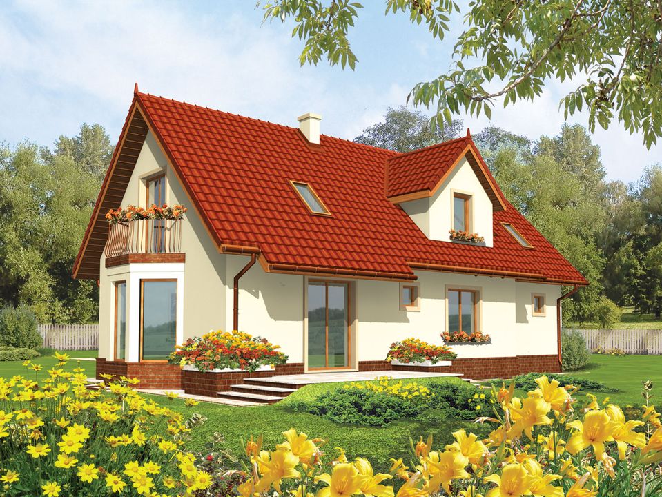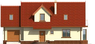 Graficzne opracowanie rzutów poglądowych widocznych na karcie projektu zostało wykonane przez Extradom.pl. Prezentowane przez Extradom.pl wizualizacje wykonane zostały przez autora projektu i należy poczytywać je jedynie za przykład i propozycję wykończenia, wizję architektoniczną autora projektu. Ostateczne wykończenie budynku może nastąpić na wiele sposobów. Szczegółowe rozwiązania zastosowane w oferowanej dokumentacji - w tym również ilość, lokalizacje i wygląd okien, drzwi, kominów - mogą w niewielkim stopniu różnić się od prezentowanej wizualizacji budynku.