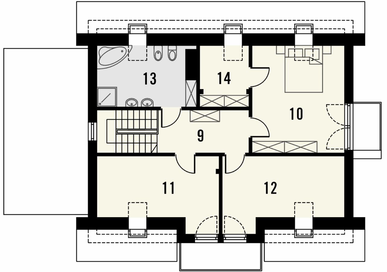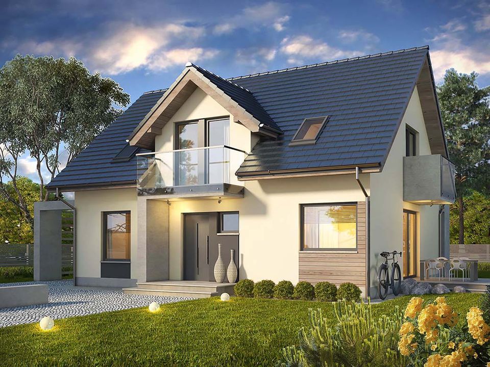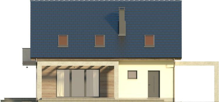 Graficzne opracowanie rzutów poglądowych widocznych na karcie projektu zostało wykonane przez Extradom.pl. Prezentowane przez Extradom.pl wizualizacje wykonane zostały przez autora projektu i należy poczytywać je jedynie za przykład i propozycję wykończenia, wizję architektoniczną autora projektu. Ostateczne wykończenie budynku może nastąpić na wiele sposobów. Szczegółowe rozwiązania zastosowane w oferowanej dokumentacji - w tym również ilość, lokalizacje i wygląd okien, drzwi, kominów - mogą w niewielkim stopniu różnić się od prezentowanej wizualizacji budynku.