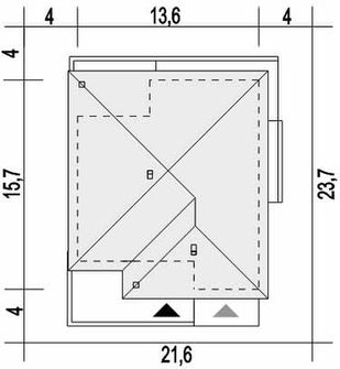 Graficzne opracowanie rzutów poglądowych widocznych na karcie projektu zostało wykonane przez Extradom.pl. Prezentowane przez Extradom.pl wizualizacje wykonane zostały przez autora projektu i należy poczytywać je jedynie za przykład i propozycję wykończenia, wizję architektoniczną autora projektu. Ostateczne wykończenie budynku może nastąpić na wiele sposobów. Szczegółowe rozwiązania zastosowane w oferowanej dokumentacji - w tym również ilość, lokalizacje i wygląd okien, drzwi, kominów - mogą w niewielkim stopniu różnić się od prezentowanej wizualizacji budynku.