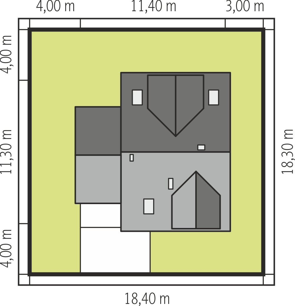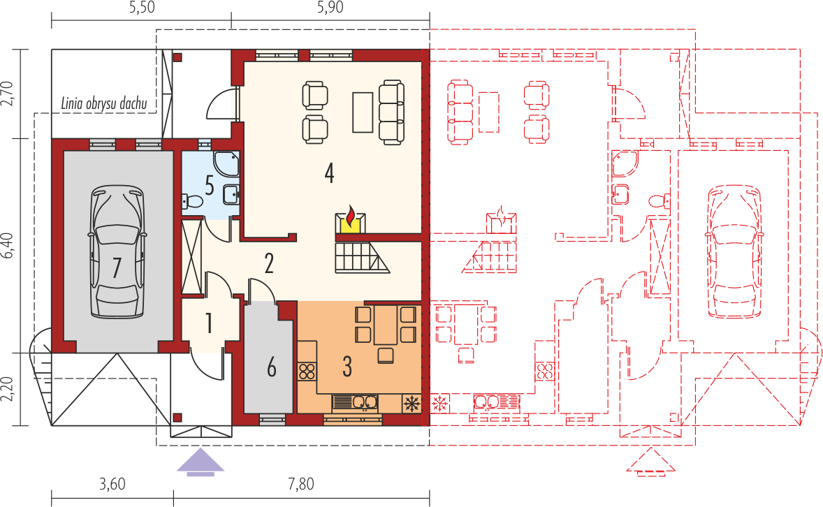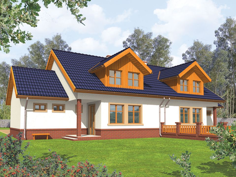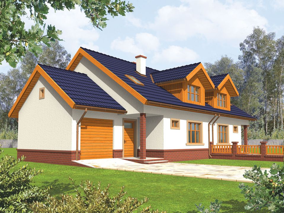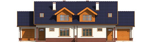 Graficzne opracowanie rzutów poglądowych widocznych na karcie projektu zostało wykonane przez Extradom.pl. Prezentowane przez Extradom.pl wizualizacje wykonane zostały przez autora projektu i należy poczytywać je jedynie za przykład i propozycję wykończenia, wizję architektoniczną autora projektu. Ostateczne wykończenie budynku może nastąpić na wiele sposobów. Szczegółowe rozwiązania zastosowane w oferowanej dokumentacji - w tym również ilość, lokalizacje i wygląd okien, drzwi, kominów - mogą w niewielkim stopniu różnić się od prezentowanej wizualizacji budynku.