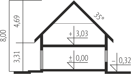 Ściany zewnętrzne: murowane,. Strop: gęstożebrowy. Dach: konstrukcja drewniana, dachówka cementowa lub ceramiczna. Ogrzewanie: kocioł gazowy, rozprowadzenie ciepła: grzejniki. Wentylacja: grawitacyjna. Elewacje: tynk i okładzina drewniana. Stolarka: drewniana.