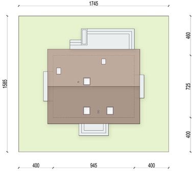 Graficzne opracowanie rzutów poglądowych widocznych na karcie projektu zostało wykonane przez Extradom.pl. Prezentowane przez Extradom.pl wizualizacje wykonane zostały przez autora projektu i należy poczytywać je jedynie za przykład i propozycję wykończenia, wizję architektoniczną autora projektu. Ostateczne wykończenie budynku może nastąpić na wiele sposobów. Szczegółowe rozwiązania zastosowane w oferowanej dokumentacji - w tym również ilość, lokalizacje i wygląd okien, drzwi, kominów - mogą w niewielkim stopniu różnić się od prezentowanej wizualizacji budynku.