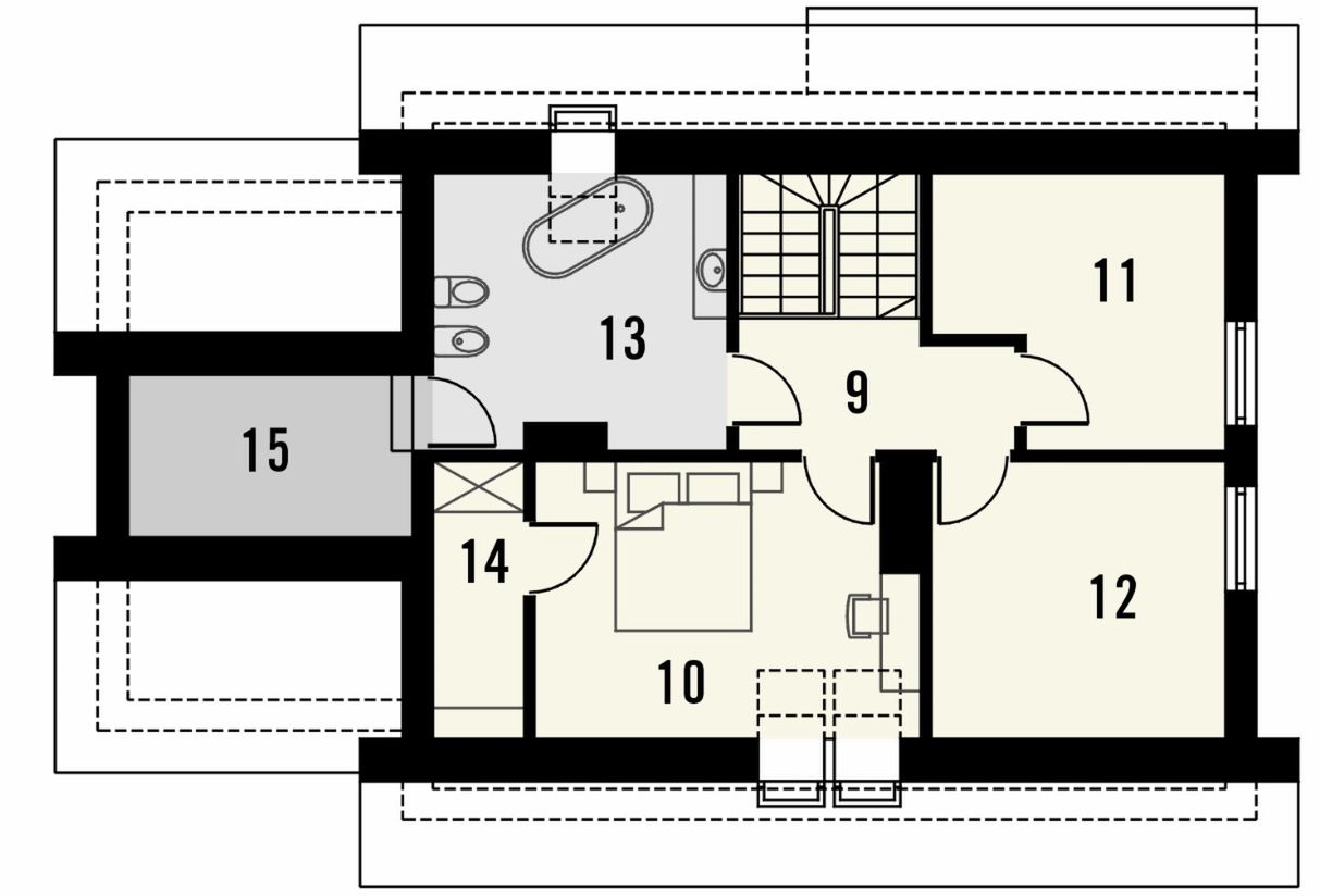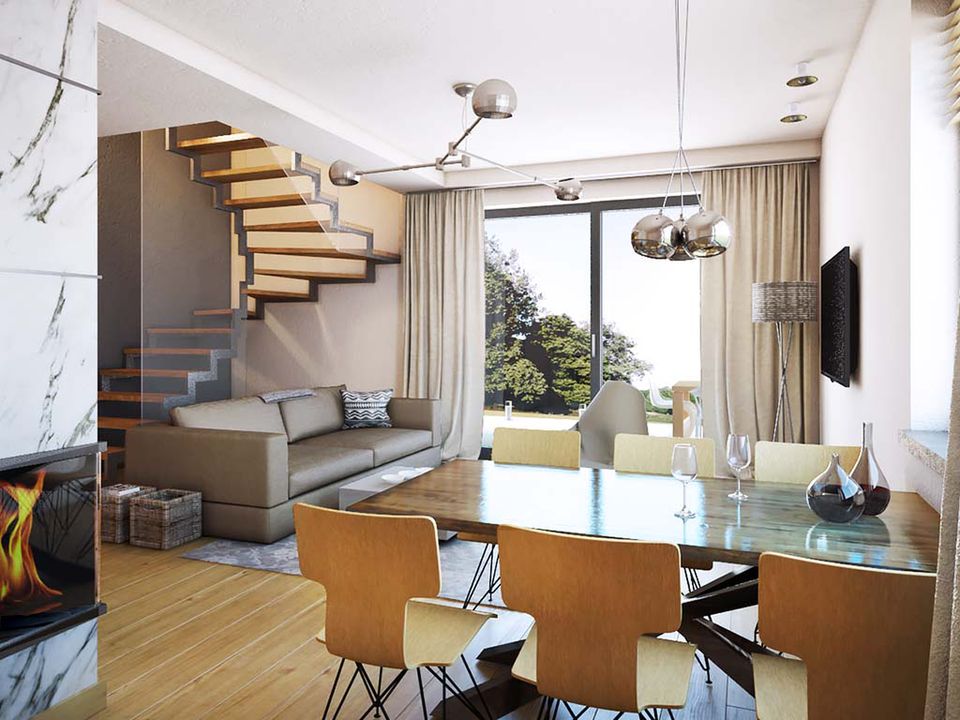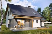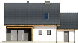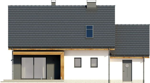 Graficzne opracowanie rzutów poglądowych widocznych na karcie projektu zostało wykonane przez Extradom.pl. Prezentowane przez Extradom.pl wizualizacje wykonane zostały przez autora projektu i należy poczytywać je jedynie za przykład i propozycję wykończenia, wizję architektoniczną autora projektu. Ostateczne wykończenie budynku może nastąpić na wiele sposobów. Szczegółowe rozwiązania zastosowane w oferowanej dokumentacji - w tym również ilość, lokalizacje i wygląd okien, drzwi, kominów - mogą w niewielkim stopniu różnić się od prezentowanej wizualizacji budynku.