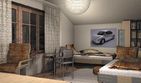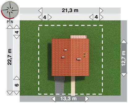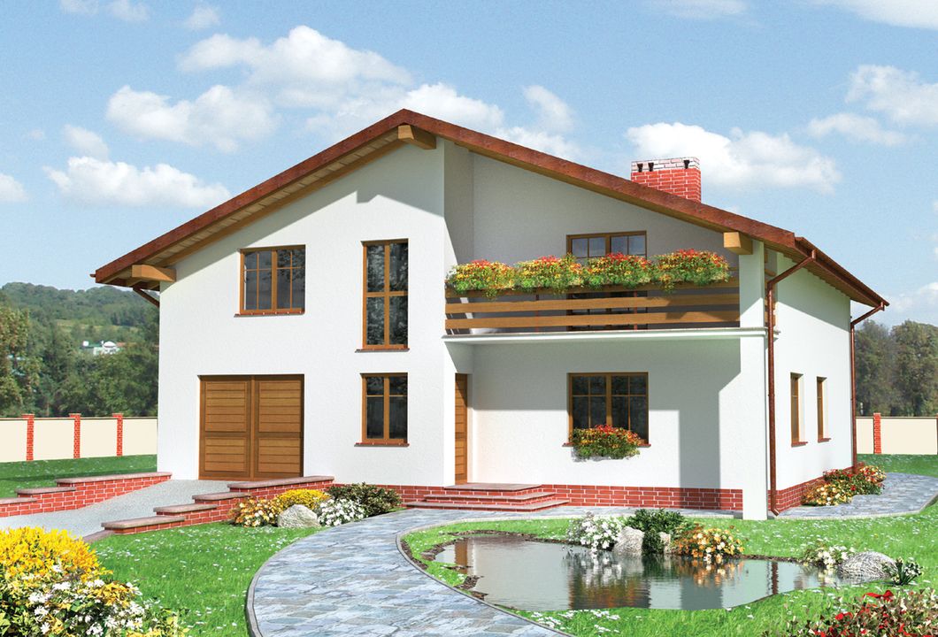 Graficzne opracowanie rzutów poglądowych widocznych na karcie projektu zostało wykonane przez Extradom.pl. Prezentowane przez Extradom.pl wizualizacje wykonane zostały przez autora projektu i należy poczytywać je jedynie za przykład i propozycję wykończenia, wizję architektoniczną autora projektu. Ostateczne wykończenie budynku może nastąpić na wiele sposobów. Szczegółowe rozwiązania zastosowane w oferowanej dokumentacji - w tym również ilość, lokalizacje i wygląd okien, drzwi, kominów - mogą w niewielkim stopniu różnić się od prezentowanej wizualizacji budynku.