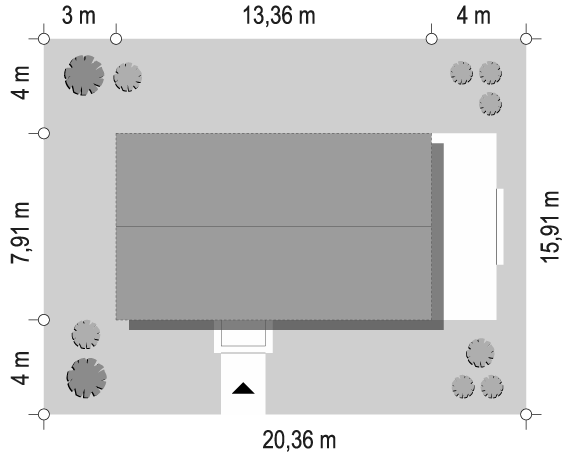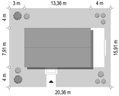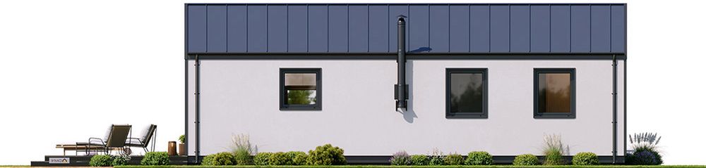 Fundamenty: :płyta betonowa fundamentowa. Ściany zewnętrzne: :ściany murowane - bloczki gazobeton + styropian. Strop: :więźba drewniana. Elewacje: :deska elewacyjna lub tynk cienkowarstwowy. Pokrycie dachu: :blacha na rąbek lub dachówka. Nachylenie dachu: 20 stopni.