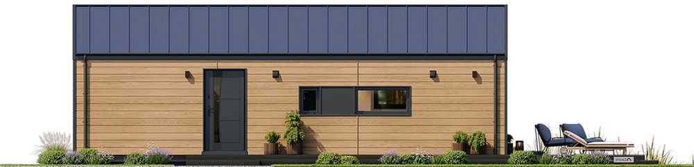 Fundamenty: :płyta betonowa fundamentowa. Ściany zewnętrzne: :szkielet drewniany + wełna mineralna. Strop: :więźba drewniana. Elewacje: :deska elewacyjna. Pokrycie dachu: :blacha na rąbek. Nachylenie dachu: 20 stopni.