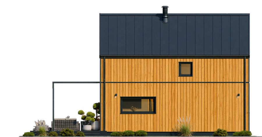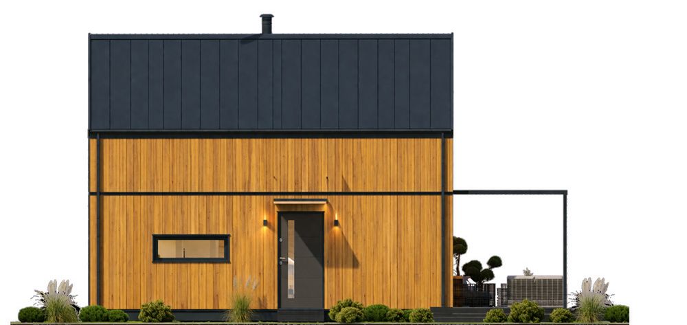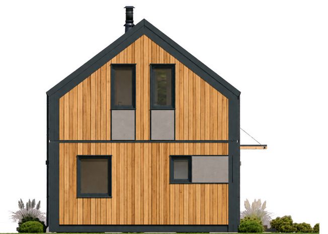Fundamenty: płyta betonowa fundamentowa Ściany zewnętrzne: szkieletowe drewniane + wełna mineralna Strop: drewniany belkowy Elewacje: deska elewacyjna Pokrycie dachu: blacha na rąbek lub dachówka