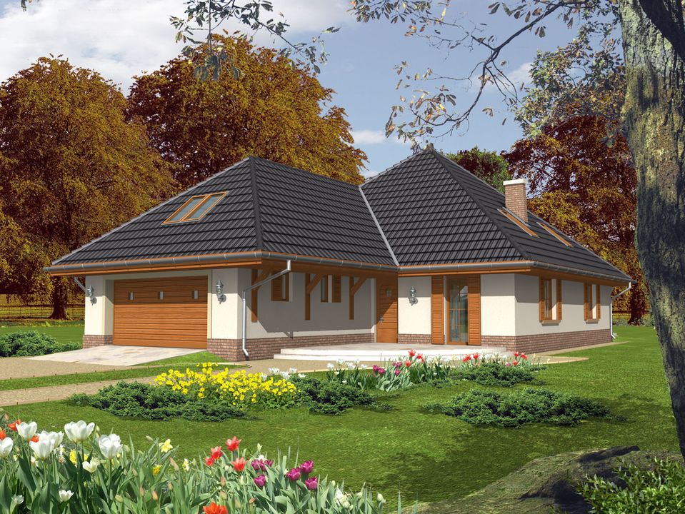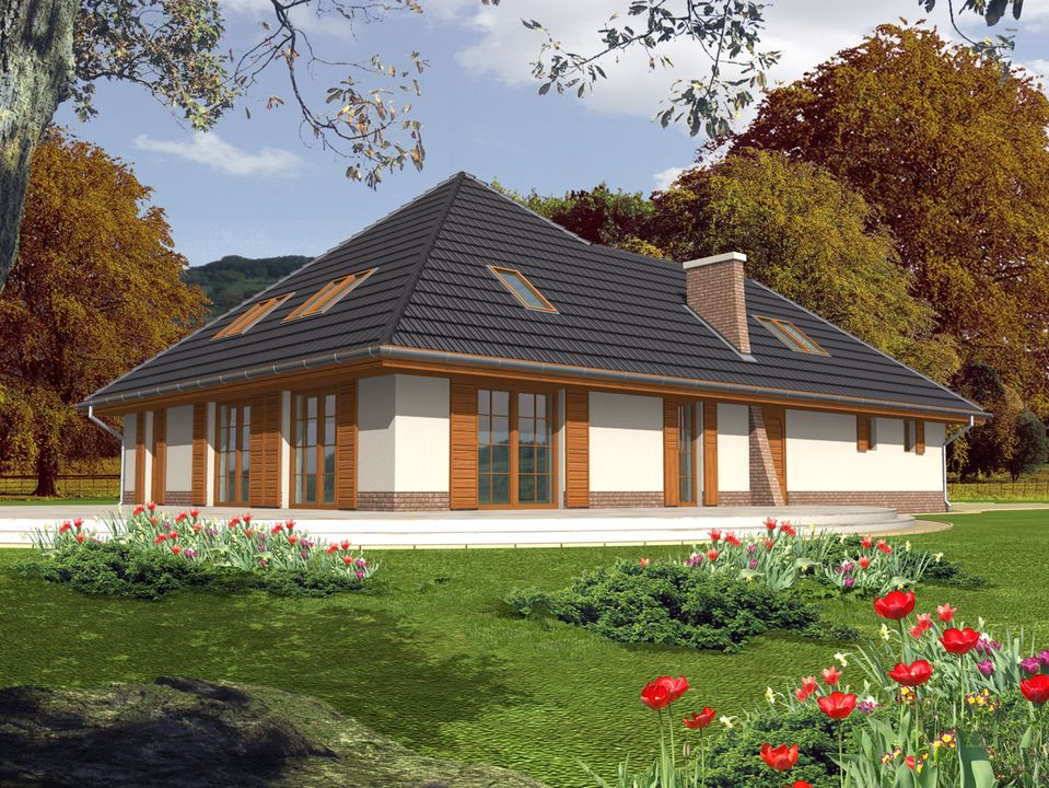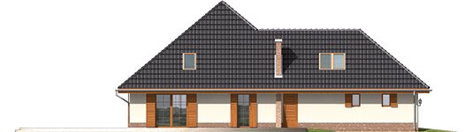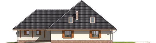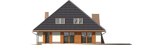 Graficzne opracowanie rzutów poglądowych widocznych na karcie projektu zostało wykonane przez Extradom.pl. Prezentowane przez Extradom.pl wizualizacje wykonane zostały przez autora projektu i należy poczytywać je jedynie za przykład i propozycję wykończenia, wizję architektoniczną autora projektu. Ostateczne wykończenie budynku może nastąpić na wiele sposobów. Szczegółowe rozwiązania zastosowane w oferowanej dokumentacji - w tym również ilość, lokalizacje i wygląd okien, drzwi, kominów - mogą w niewielkim stopniu różnić się od prezentowanej wizualizacji budynku.