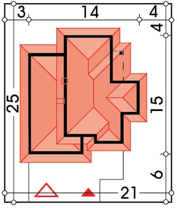 Fundamenty: betonowe. Ściany zewnętrzne: 24 cm + styropian 20 cm. Ściany wewnętrzne: 24 cm. Strop: gęstożebrowy. Pokrycie dachowe: dachówka ceramiczna. Wersja z kotłownią na paliwo stałe.