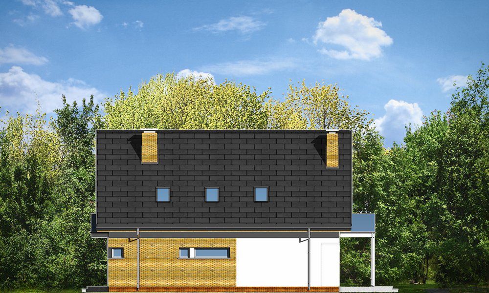 Graficzne opracowanie rzutów poglądowych widocznych na karcie projektu zostało wykonane przez Extradom.pl. Prezentowane przez Extradom.pl wizualizacje wykonane zostały przez autora projektu i należy poczytywać je jedynie za przykład i propozycję wykończenia, wizję architektoniczną autora projektu. Ostateczne wykończenie budynku może nastąpić na wiele sposobów. Szczegółowe rozwiązania zastosowane w oferowanej dokumentacji - w tym również ilość, lokalizacje i wygląd okien, drzwi, kominów - mogą w niewielkim stopniu różnić się od prezentowanej wizualizacji budynku.