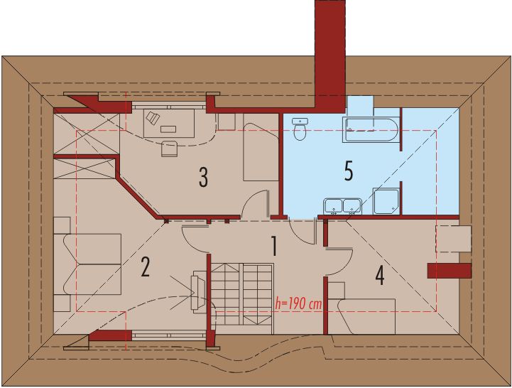 Dom zaprojektowano w technologii murowej ze stropem drewnianym. Schody wewnętrzne drewniane. Dach o konstrukcji drewnianej kryty dachówką ceramiczną karpiówką.