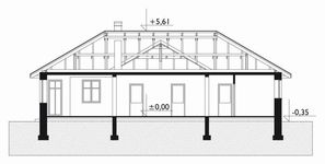 Graficzne opracowanie rzutów poglądowych widocznych na karcie projektu zostało wykonane przez Extradom.pl. Prezentowane przez Extradom.pl wizualizacje wykonane zostały przez autora projektu i należy poczytywać je jedynie za przykład i propozycję wykończenia, wizję architektoniczną autora projektu. Ostateczne wykończenie budynku może nastąpić na wiele sposobów. Szczegółowe rozwiązania zastosowane w oferowanej dokumentacji - w tym również ilość, lokalizacje i wygląd okien, drzwi, kominów - mogą w niewielkim stopniu różnić się od prezentowanej wizualizacji budynku.