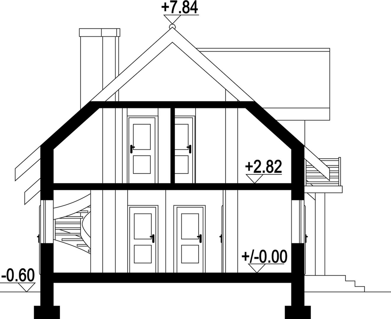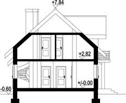 Wysokość ścianki kolankowej: 0.9 m. Strop: płyta żelbetowa. Pokrycie dachu: dachówka ceramiczna. Ściany zewnętrzne: pustaki ceramiczne + styropian. Ściany wewnętrzne: pustaki ceramiczne. Typ ogrzewania: kocioł gazowy lub kocioł na paliwo stałe. Inne: okna połaciowe Fakro.