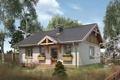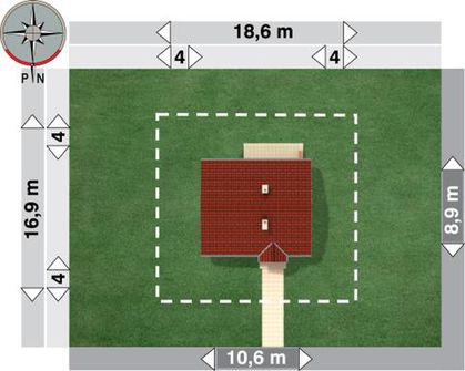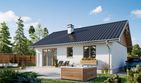 Graficzne opracowanie rzutów poglądowych widocznych na karcie projektu zostało wykonane przez Extradom.pl. Prezentowane przez Extradom.pl wizualizacje wykonane zostały przez autora projektu i należy poczytywać je jedynie za przykład i propozycję wykończenia, wizję architektoniczną autora projektu. Ostateczne wykończenie budynku może nastąpić na wiele sposobów. Szczegółowe rozwiązania zastosowane w oferowanej dokumentacji - w tym również ilość, lokalizacje i wygląd okien, drzwi, kominów - mogą w niewielkim stopniu różnić się od prezentowanej wizualizacji budynku.