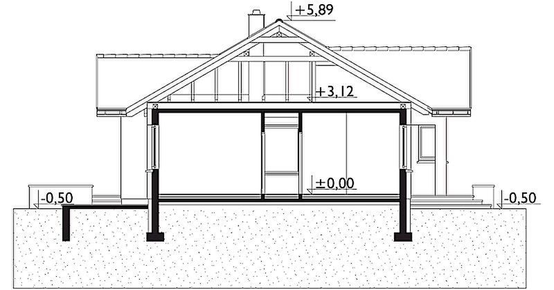 Wersja technologiczna: murowana - beton komórkowy. Strop: lekki strop panelowy Smart firmy Konbet. Typ schodów: brak. Konstrukcja dachu: drewniana krokwiowo-jętkowa. Typ ogrzewania: Kocioł na gaz. Dostępna wersja z paliwem stałym: Tak. Dostępna wersja z pompą ciepła: Tak. Wentylacja: mechaniczna. Ściany zewnętrzne: 24 cm beton komórkowy. Ściany wewnętrzne: 24 cm beton komórkowy. Ściany wewnętrzne działowe: 12 cm beton komórkowy. Wentylacja: mechaniczna.