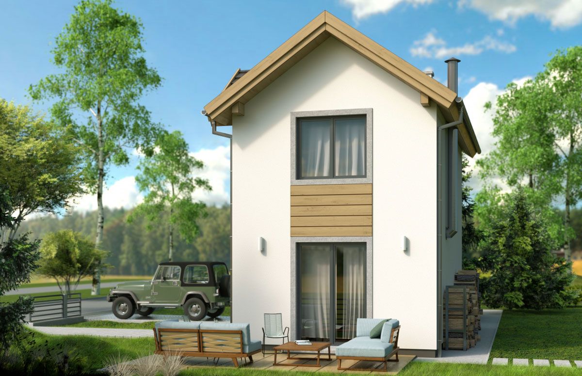 Graficzne opracowanie rzutów poglądowych widocznych na karcie projektu zostało wykonane przez Extradom.pl. Prezentowane przez Extradom.pl wizualizacje wykonane zostały przez autora projektu i należy poczytywać je jedynie za przykład i propozycję wykończenia, wizję architektoniczną autora projektu. Ostateczne wykończenie budynku może nastąpić na wiele sposobów. Szczegółowe rozwiązania zastosowane w oferowanej dokumentacji - w tym również ilość, lokalizacje i wygląd okien, drzwi, kominów - mogą w niewielkim stopniu różnić się od prezentowanej wizualizacji budynku.