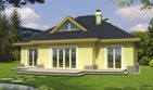 Graficzne opracowanie rzutów poglądowych widocznych na karcie projektu zostało wykonane przez Extradom.pl. Prezentowane przez Extradom.pl wizualizacje wykonane zostały przez autora projektu i należy poczytywać je jedynie za przykład i propozycję wykończenia, wizję architektoniczną autora projektu. Ostateczne wykończenie budynku może nastąpić na wiele sposobów. Szczegółowe rozwiązania zastosowane w oferowanej dokumentacji - w tym również ilość, lokalizacje i wygląd okien, drzwi, kominów - mogą w niewielkim stopniu różnić się od prezentowanej wizualizacji budynku.