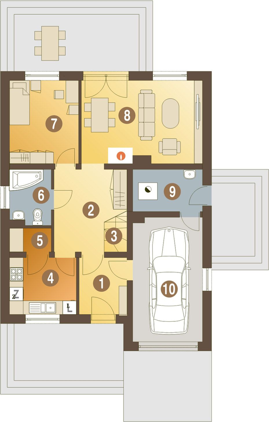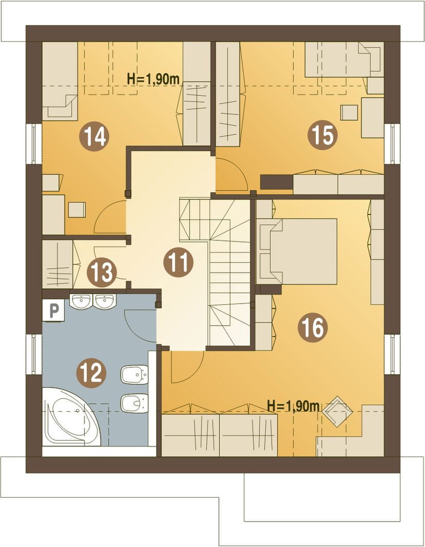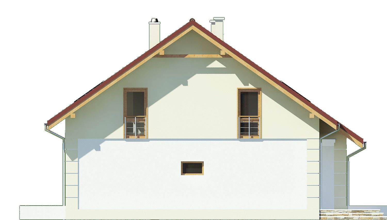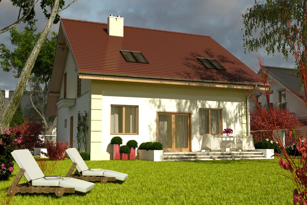 Graficzne opracowanie rzutów poglądowych widocznych na karcie projektu zostało wykonane przez Extradom.pl. Prezentowane przez Extradom.pl wizualizacje wykonane zostały przez autora projektu i należy poczytywać je jedynie za przykład i propozycję wykończenia, wizję architektoniczną autora projektu. Ostateczne wykończenie budynku może nastąpić na wiele sposobów. Szczegółowe rozwiązania zastosowane w oferowanej dokumentacji - w tym również ilość, lokalizacje i wygląd okien, drzwi, kominów - mogą w niewielkim stopniu różnić się od prezentowanej wizualizacji budynku.
