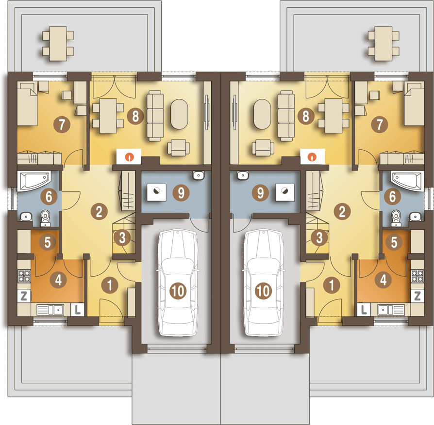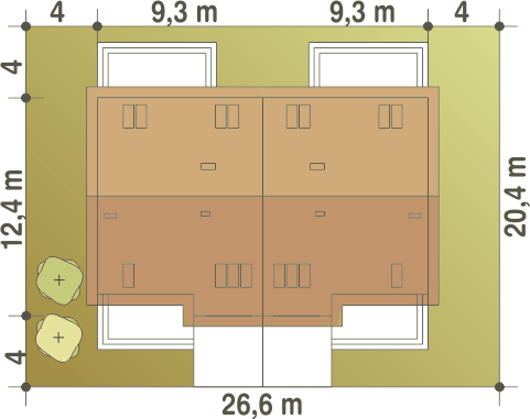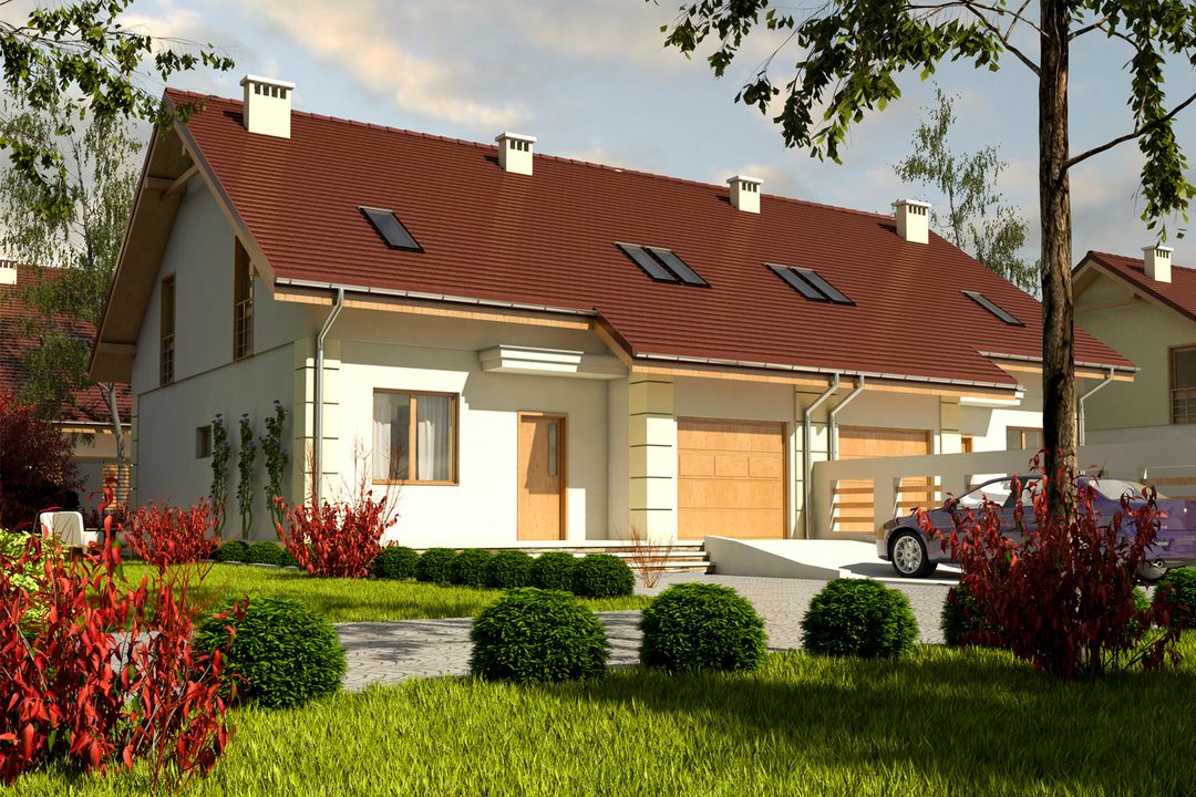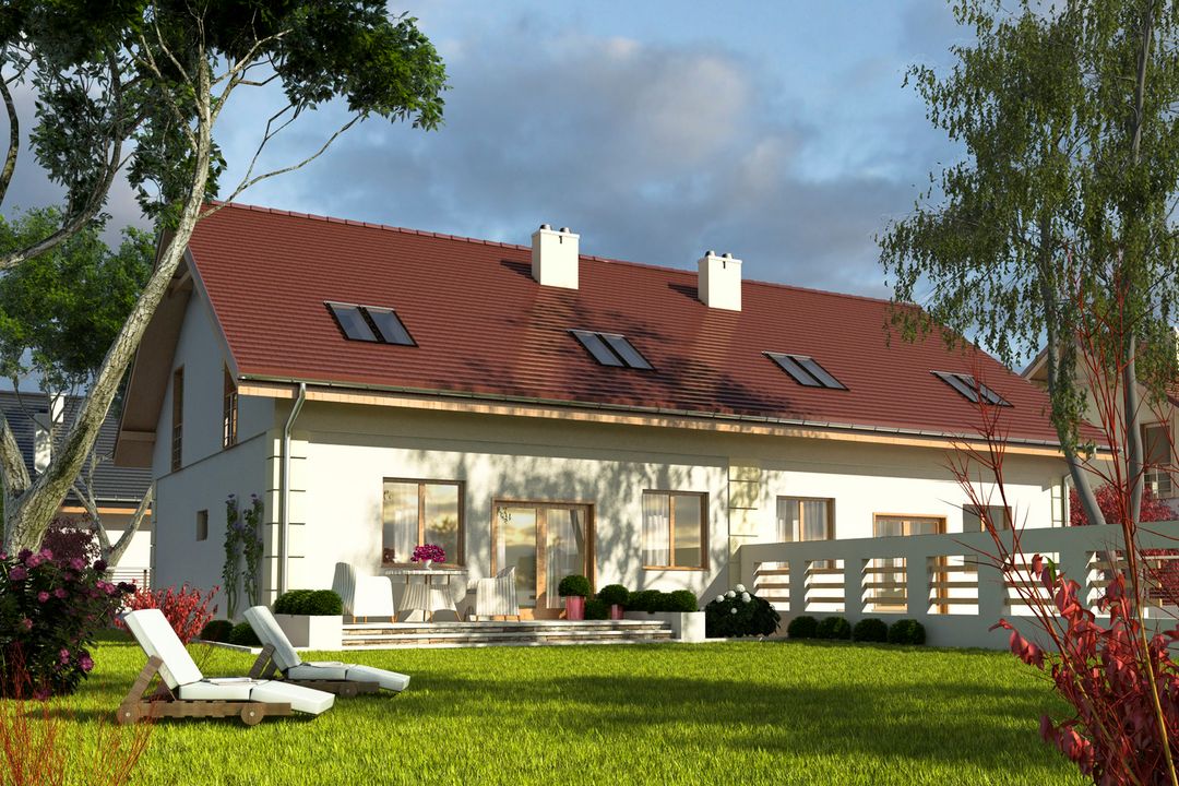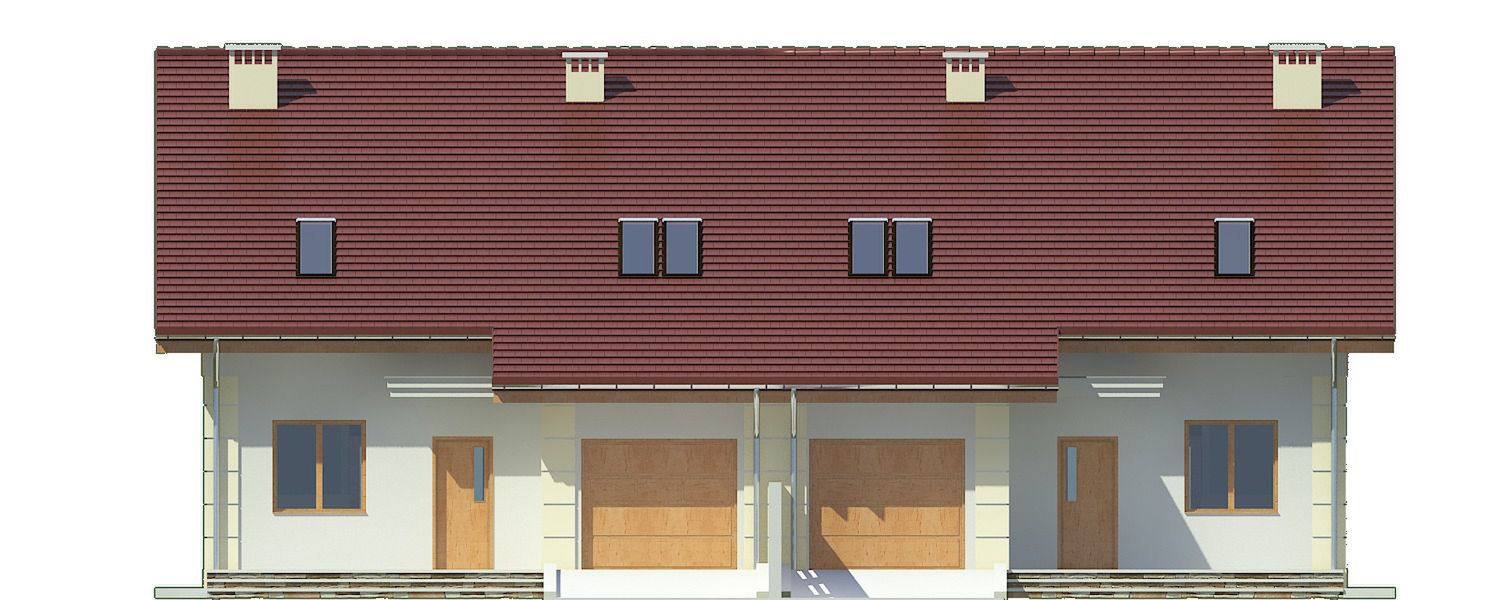 Projekt wymaga aktualizacji. Przy zakupie projektu należy zapłacić 50% zaliczki. Zaliczka jest bezzwrotna w przypadku zwrotu lub rezygnacji z zamówienia. Budynek dwulokalowy posadowiony na wspólnym fundamencie. Jeśli planujesz budowę na osobnych działkach zamów pojedyncze segmenty: podstawa + lustro.