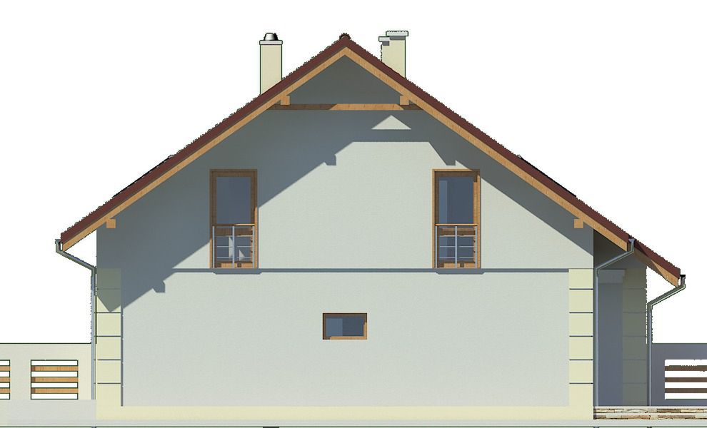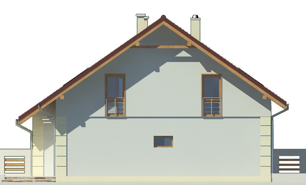 Graficzne opracowanie rzutów poglądowych widocznych na karcie projektu zostało wykonane przez Extradom.pl. Prezentowane przez Extradom.pl wizualizacje wykonane zostały przez autora projektu i należy poczytywać je jedynie za przykład i propozycję wykończenia, wizję architektoniczną autora projektu. Ostateczne wykończenie budynku może nastąpić na wiele sposobów. Szczegółowe rozwiązania zastosowane w oferowanej dokumentacji - w tym również ilość, lokalizacje i wygląd okien, drzwi, kominów - mogą w niewielkim stopniu różnić się od prezentowanej wizualizacji budynku.