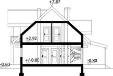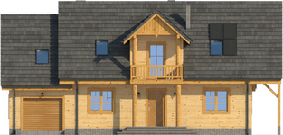 Graficzne opracowanie rzutów poglądowych widocznych na karcie projektu zostało wykonane przez Extradom.pl. Prezentowane przez Extradom.pl wizualizacje wykonane zostały przez autora projektu i należy poczytywać je jedynie za przykład i propozycję wykończenia, wizję architektoniczną autora projektu. Ostateczne wykończenie budynku może nastąpić na wiele sposobów. Szczegółowe rozwiązania zastosowane w oferowanej dokumentacji - w tym również ilość, lokalizacje i wygląd okien, drzwi, kominów - mogą w niewielkim stopniu różnić się od prezentowanej wizualizacji budynku.