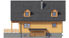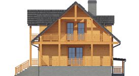 Wysokość ścianki kolankowej: 0.76 m. Strop: drewniany. Pokrycie dachu: dachówka gontopodobna Gerard Corona. Ściany zewnętrzne: płazy drewniane + wełna mineralna + deska. Ściany wewnętrzne: płazy drewniane. Typ ogrzewania: kocioł gazowy lub kocioł na paliwo stałe.