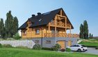 Graficzne opracowanie rzutów poglądowych widocznych na karcie projektu zostało wykonane przez Extradom.pl. Prezentowane przez Extradom.pl wizualizacje wykonane zostały przez autora projektu i należy poczytywać je jedynie za przykład i propozycję wykończenia, wizję architektoniczną autora projektu. Ostateczne wykończenie budynku może nastąpić na wiele sposobów. Szczegółowe rozwiązania zastosowane w oferowanej dokumentacji - w tym również ilość, lokalizacje i wygląd okien, drzwi, kominów - mogą w niewielkim stopniu różnić się od prezentowanej wizualizacji budynku.