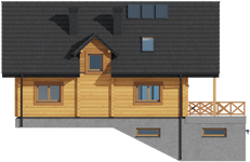 Wysokość ścianki kolankowej: 0.62 m. Strop: żelbet + drewniany. Pokrycie dachu: dachówka gontopodobna Gerard Corona. Ściany zewnętrzne: płazy drewniane + wełna mineralna + deska. Ściany wewnętrzne: płazy drewniane. Typ ogrzewania: kocioł gazowy lub kocioł na paliwo stałe. Instalacje dodatkowe: instalacja solarna. Inne: okna połaciowe Velux.