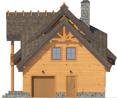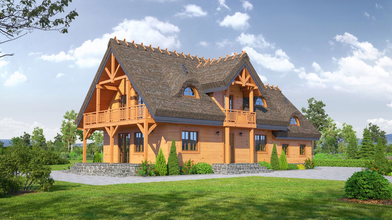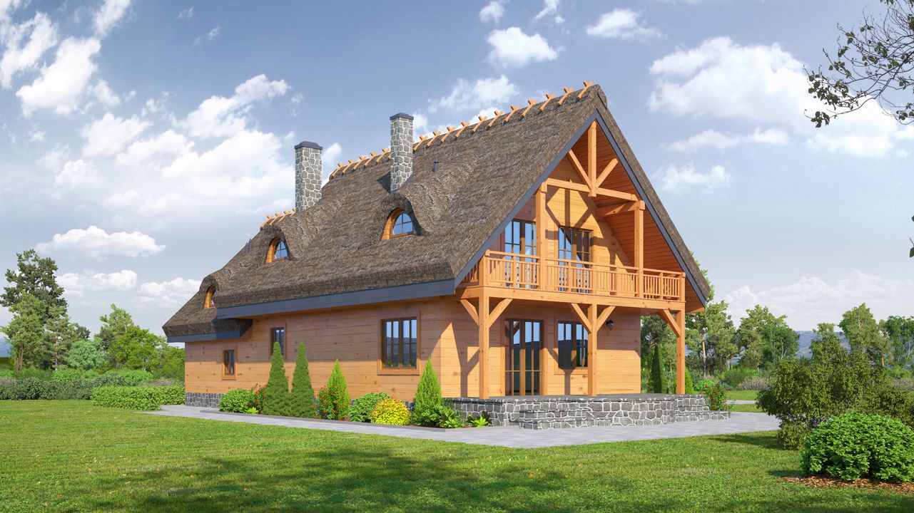 Wysokość ścianki kolankowej: 0.92 m. Ilość drewna na więźbę: 18.6 m³. Strop: drewniany. Pokrycie dachu: strzecha. Ściany zewnętrzne: szkieletowe drewniane ocieplone wełną mineralną. Ściany wewnętrzne: szkieletowe drewniane. Typ ogrzewania: kocioł gazowy lub kocioł na paliwo stałe.