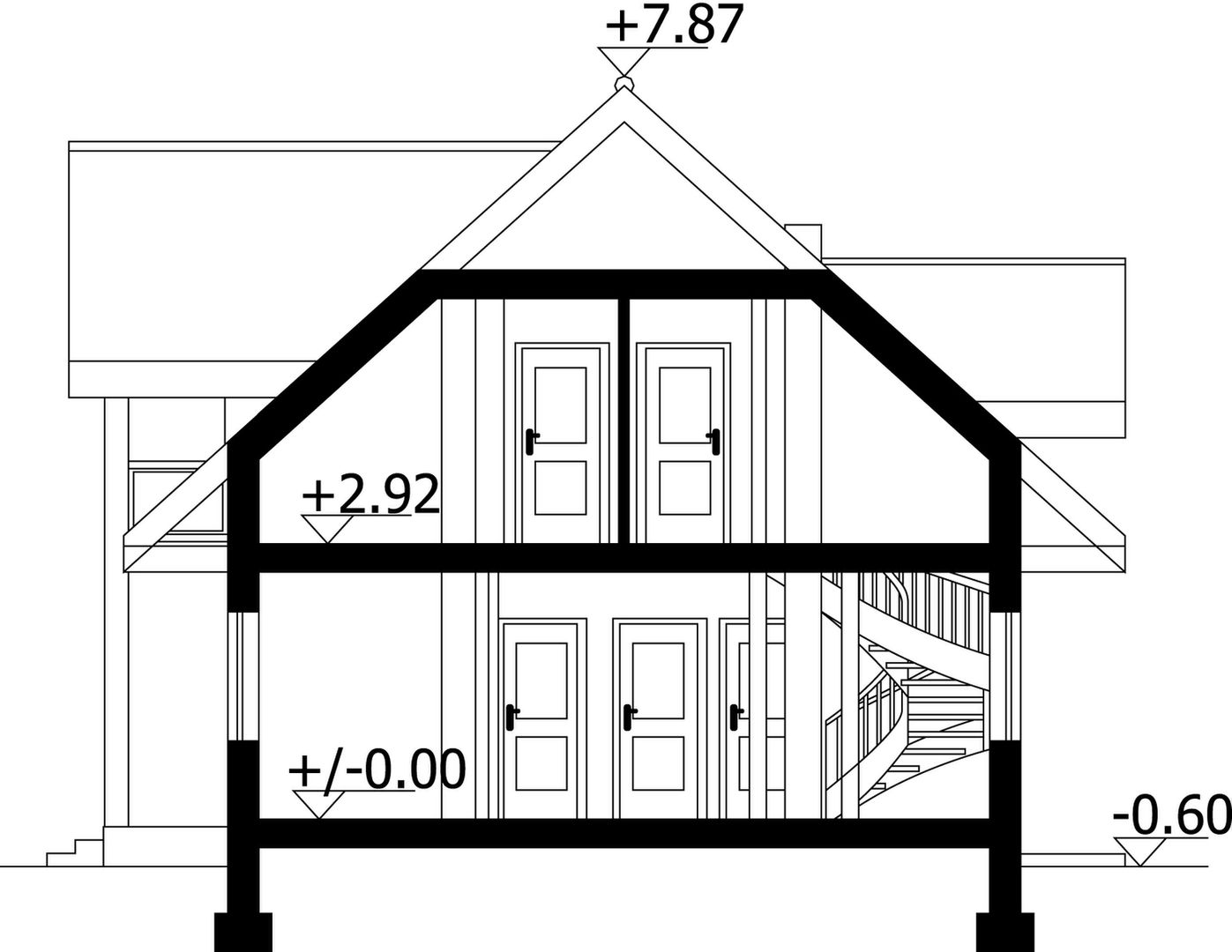 Wysokość ścianki kolankowej: 0.79 m. Strop: drewniany. Pokrycie dachu: dachówka gontopodobna Gerard Corona. Ściany zewnętrzne: szkieletowe drewniane ocieplone wełną mineralną. Ściany wewnętrzne: szkieletowe drewniane. Typ ogrzewania: kocioł gazowy lub kocioł na paliwo stałe. Inne: okna połaciowe Velux.